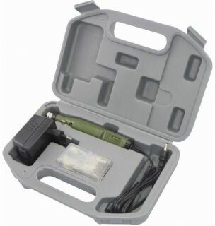 | Комплектация | гравер; блок питания; насадки: отрезной круг (5 шт.), цилиндр наждачный (4 шт.), алмазный шлифовальный наконечник (2 шт.), камень шлифовальный (5 шт.), шетка фронтальная (2 шт.), щетка горизонтальная (1 шт.), щетровый полировальный круг (2 шт.), сверло по металлу (5 шт.); патрон латунный зажимной (5 шт.); держатель отрезных кругов; держатель полировального круга; держатель наждачных цилиндров |