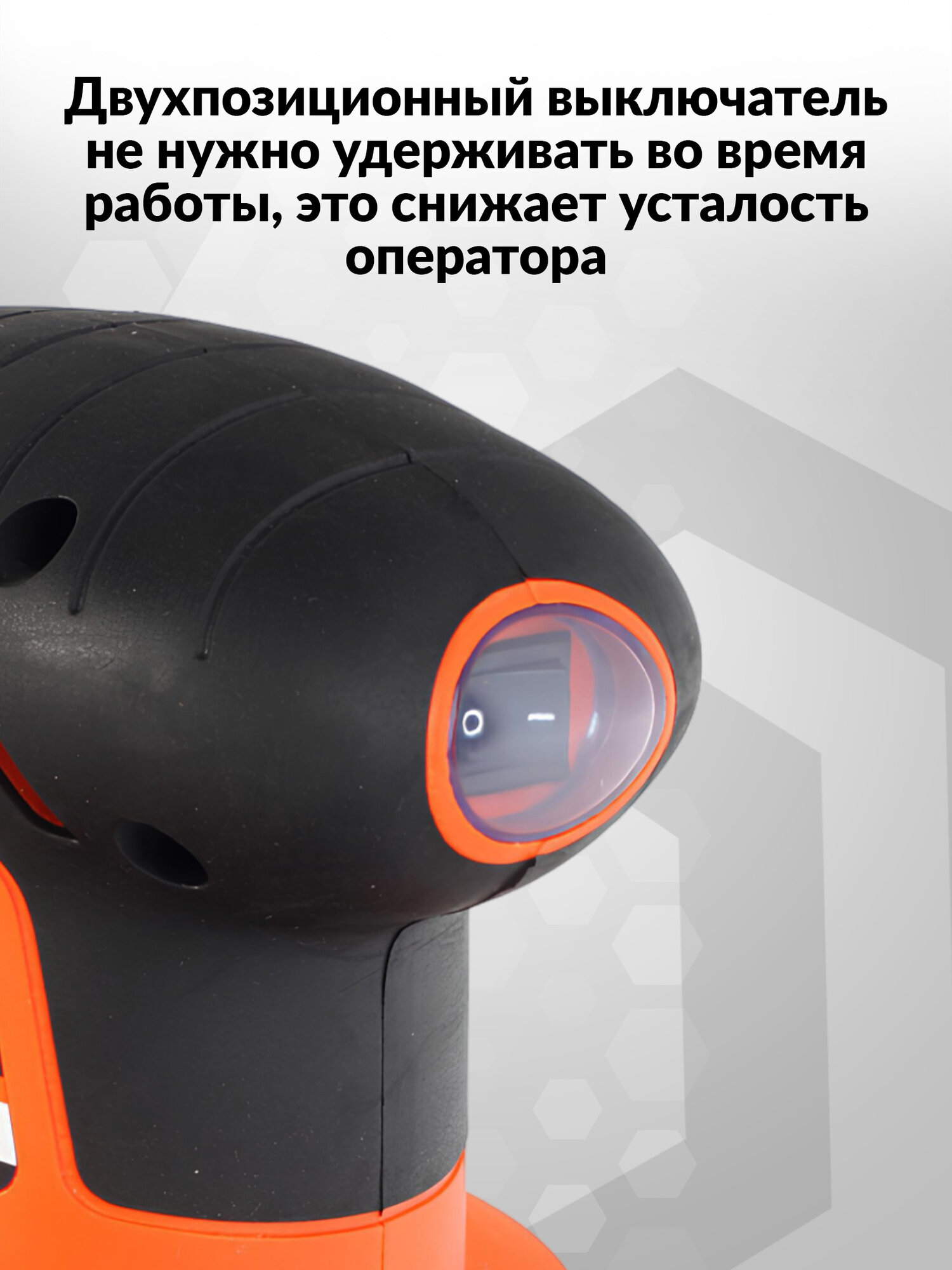 Удобный хват, в т.ч. можно и одной рукой работать. Кабель мягкий резиновый 2x0,75мм, длина 2м Есть юбка-тормоз подошвы (удивительно, но встречаются машинки без оной, как ими можно комфортно работать - не представляю) |