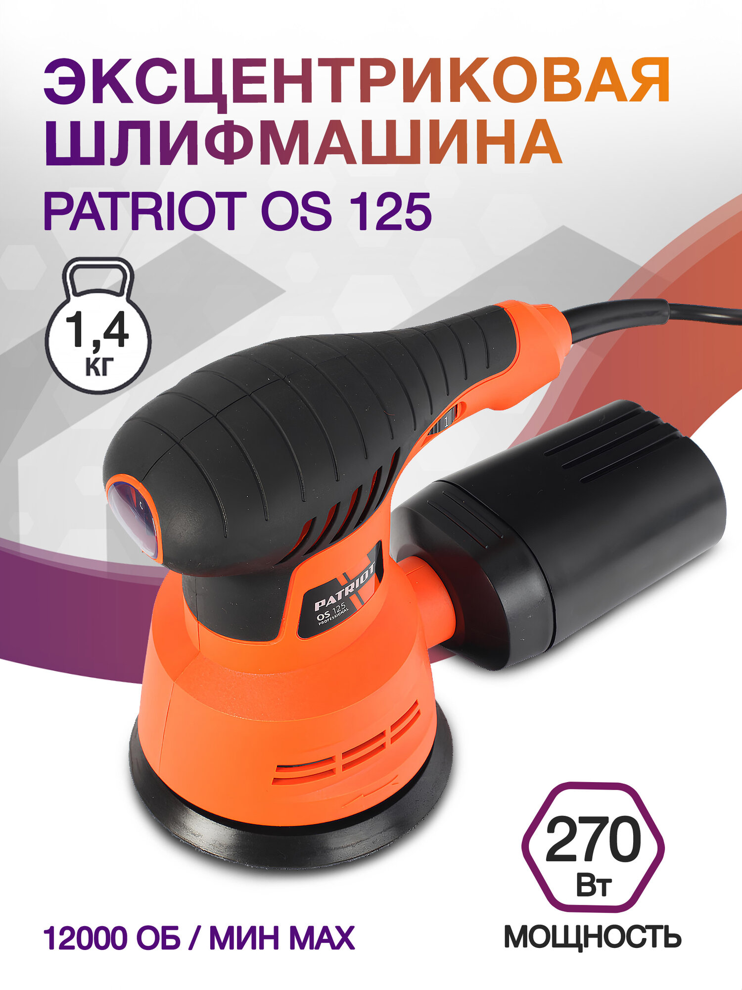 Эксцентриковая шлифмашина Patriot OS 125, 270 Вт, D 125 мм