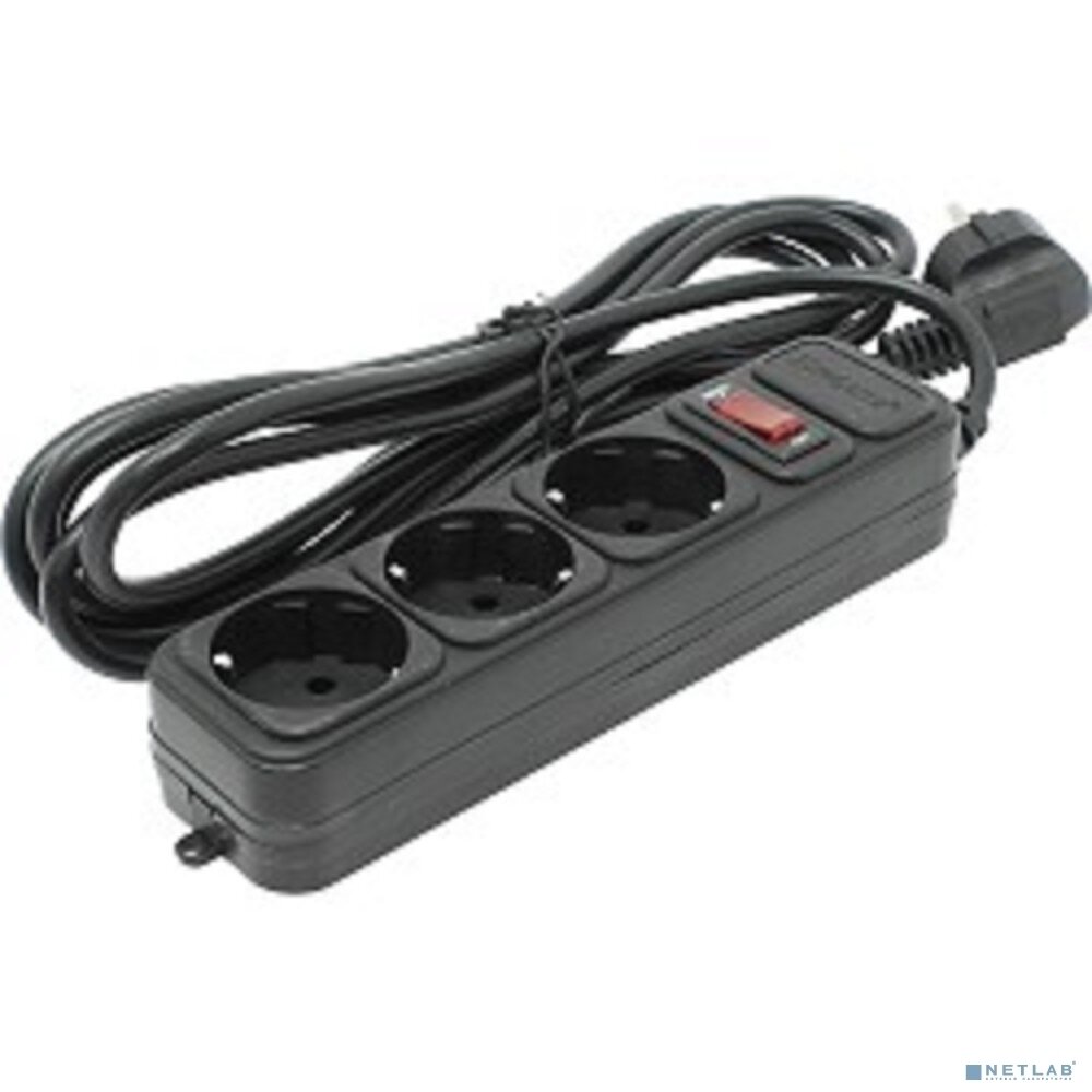 Сетевой фильтр ExeGate SP-3-3B (3 евророзетки с заземлением, 3м, защита от перегрузки, выключатель с подсветкой, черный) EX221179RUS