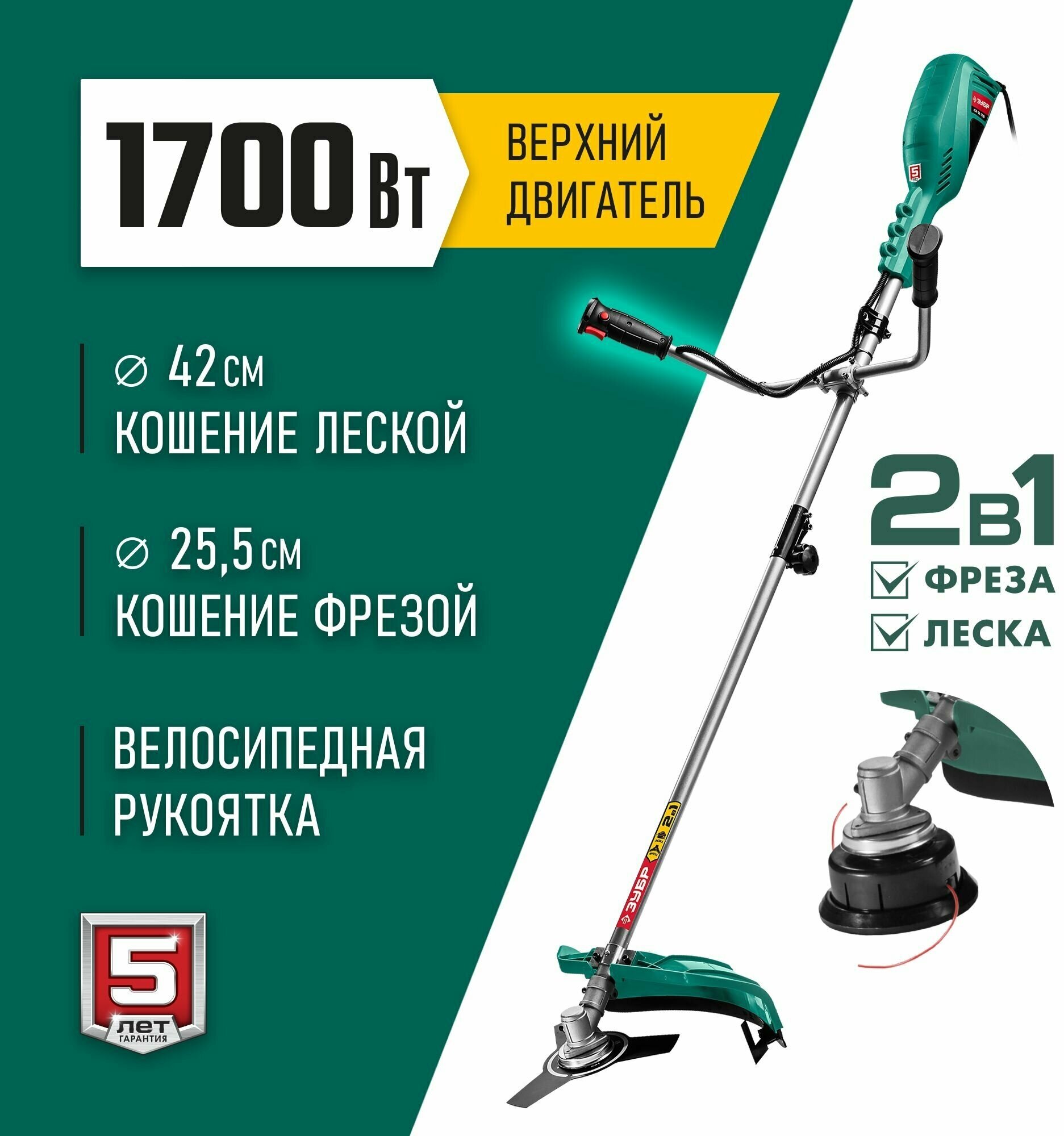 Сетевая коса ЗУБР 1700 Вт ш/с 42/25 см КСВ-42-1700