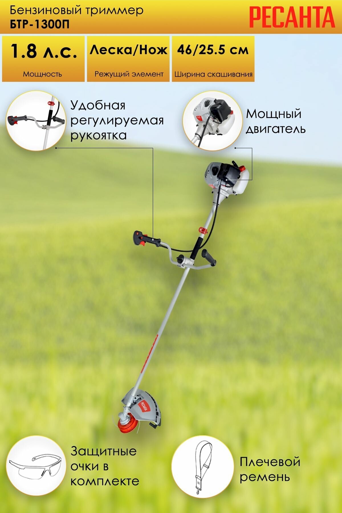 Триммер бензиновый РЕСАНТА БТР-1300П, 1.8 л.с., 46 см