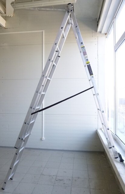 Новая высота Лестница-трансформер 3-х секционная 3×7 ступеней, 3×1,9 м, высота 4,5 м, нагрузка 150 кг, алюминий, новая высота