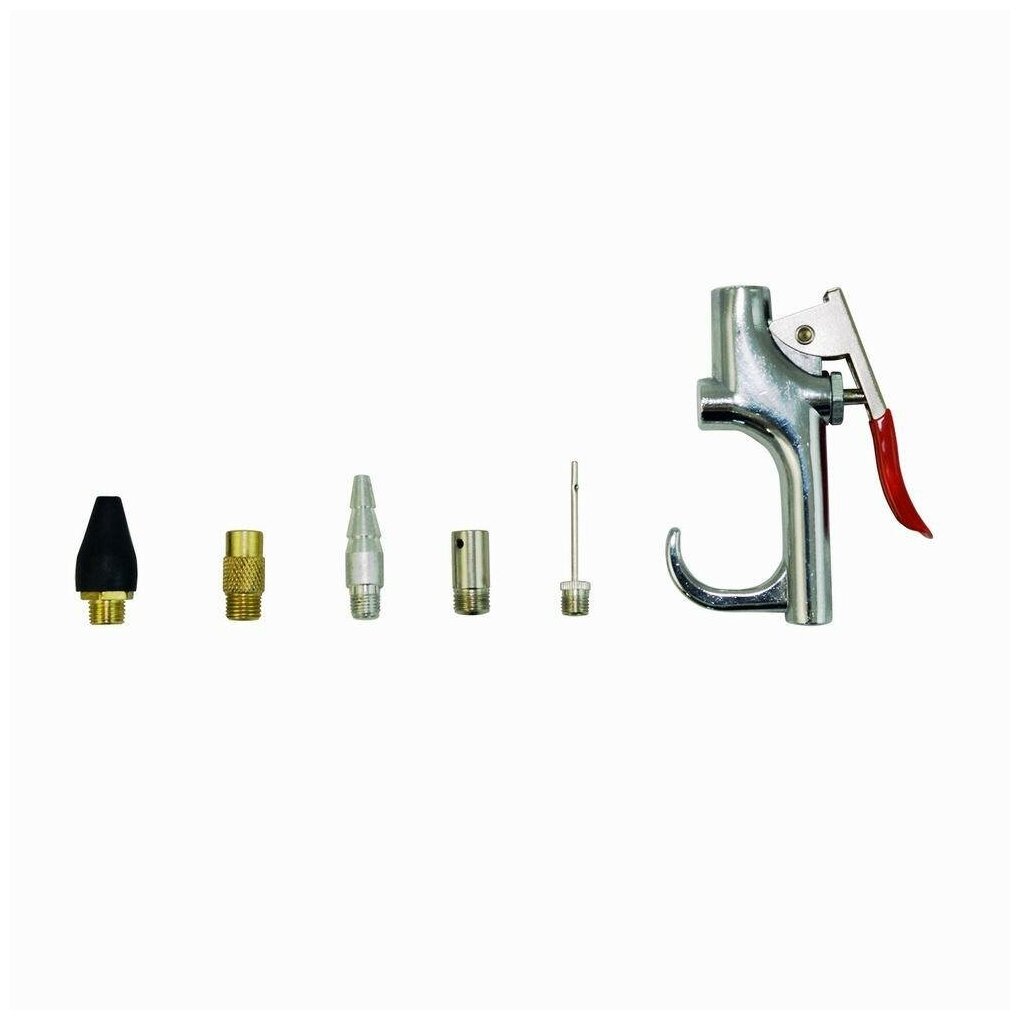 | Комплектация | пистолет с курком; сопло высокого давления; обдувочная насадка; коническая насадка; игла для подкачки; трубка-удлинитель; предохранительный резиновый наконечник |