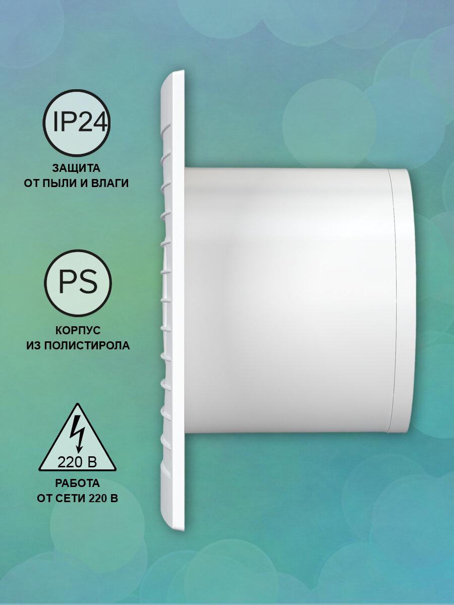 Вентилятор вытяжной осевой AURAMAX A 5-02, с тяговым выключателем, тонкая лицевая панель, D 125 мм, белый