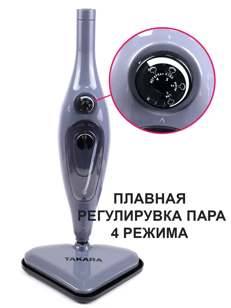 Паровая швабра TAKARA SM-305 NEW серая, эффективная дезинфекция, 12в1
