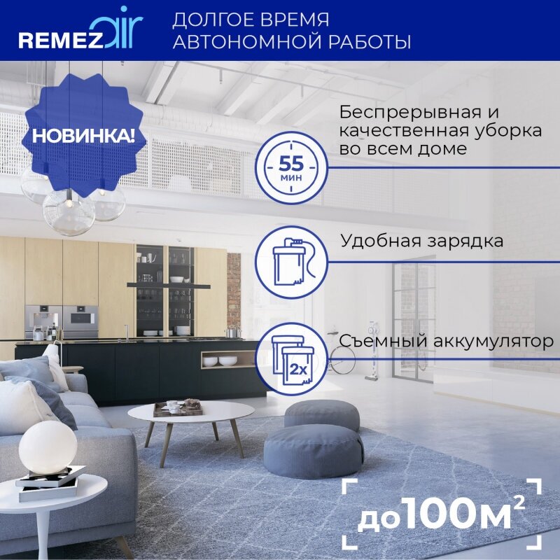 Вертикальный пылесос REMEZAIR RMVC-502 160 Вт, белый/синий, питание от аккумулятора (RMVC-502)