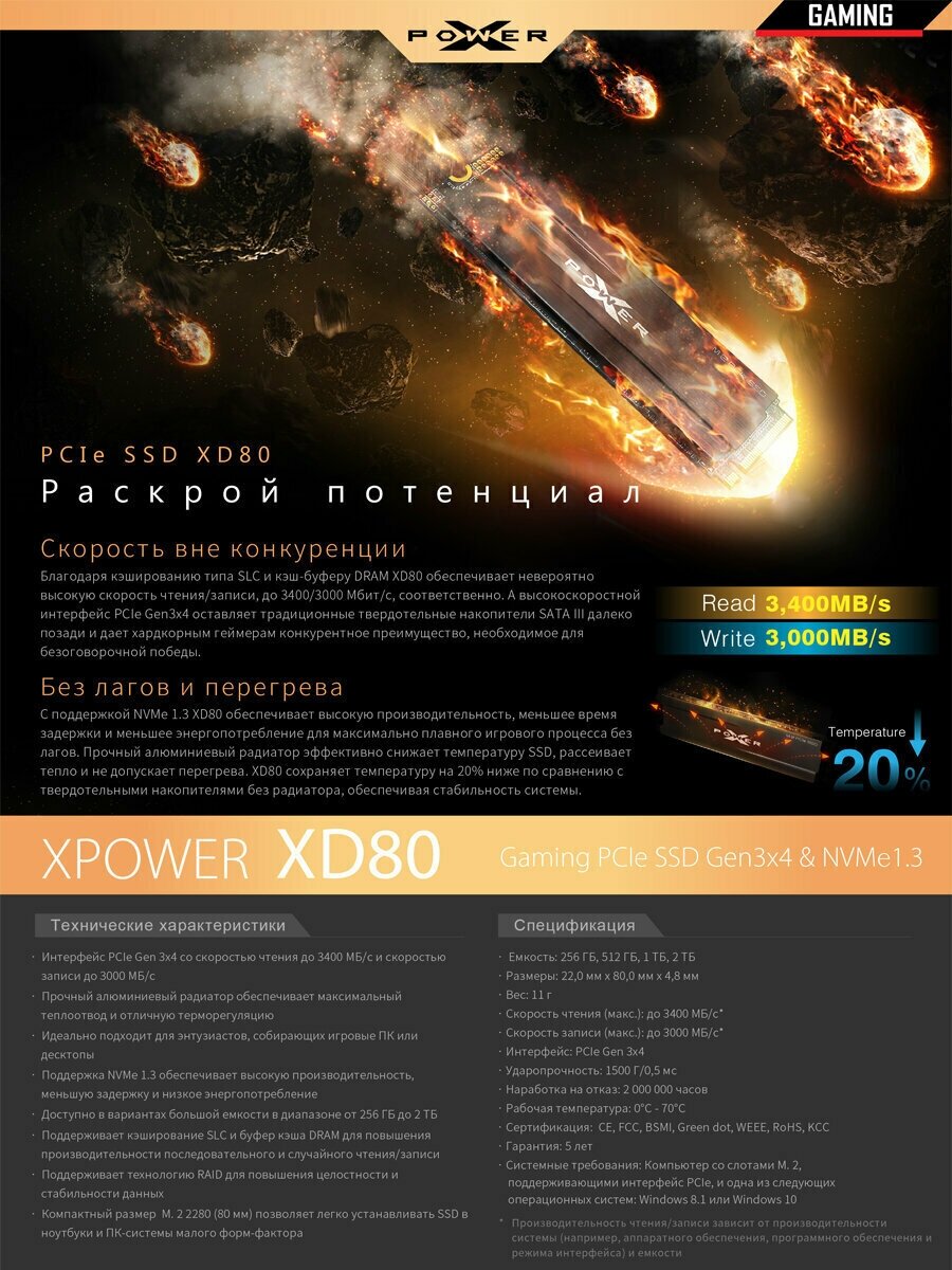 Сохранить256 ГБ SSD M.2 накопитель Silicon_Power XD80 (SP256GBP34XD8005) интересное: