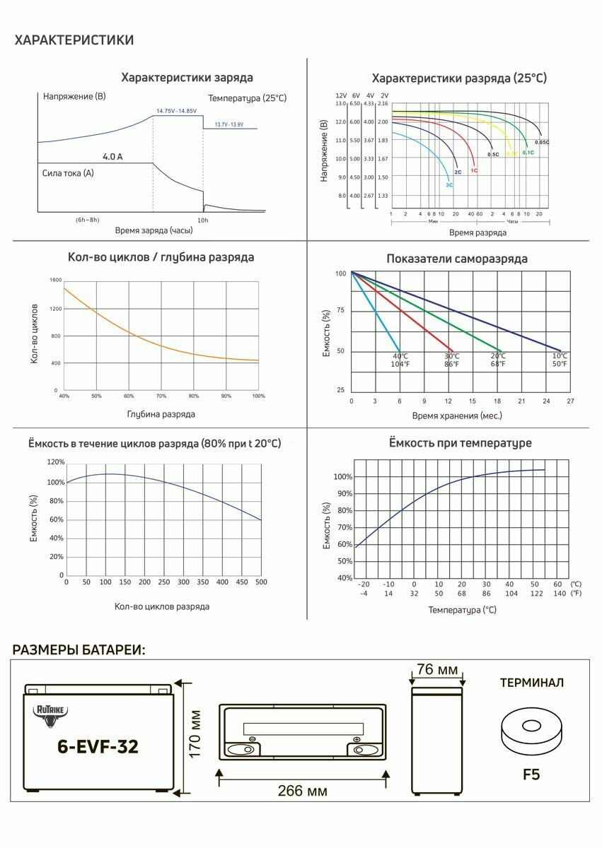 Тяговый аккумулятор Rutrike 6-EVF-32 (12V32A/H C3) интересное: