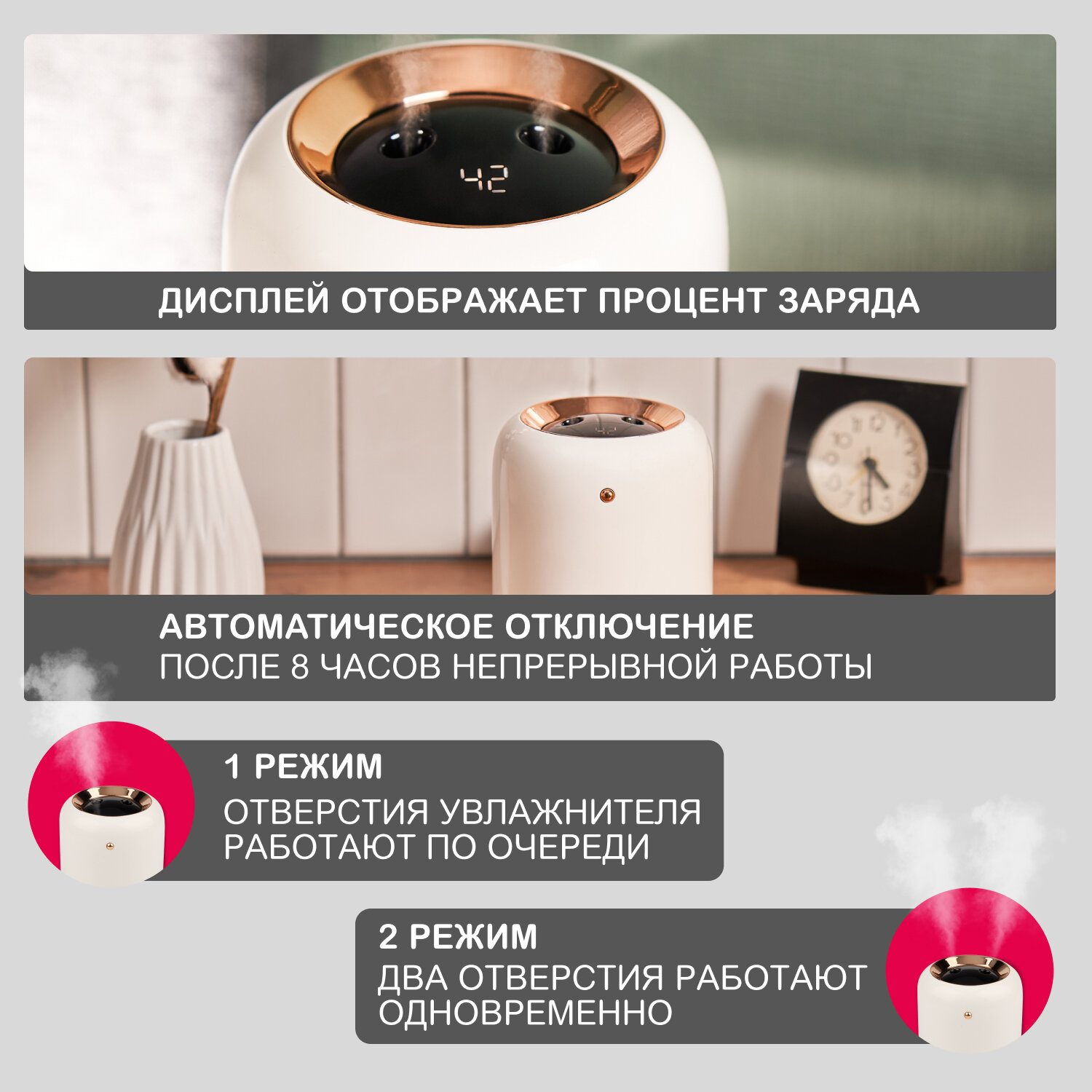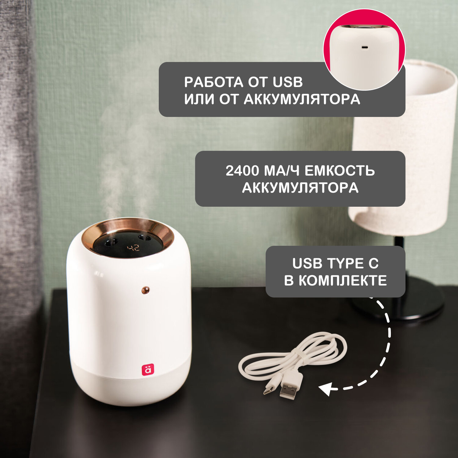 Увлажнитель воздуха USB из антибактериального АБС-пластика с хлопковыми фильтрами и таймером, резервуар 1 литр интересное:
