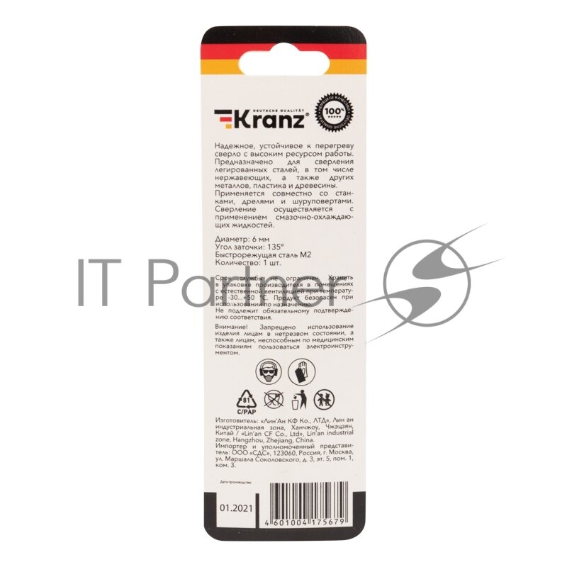 Сверло По Металлу 6 Мм «Стандарт+» (P6m5 M-2) (1 Шт. В Блистере) Din 338 Kranz Kr-91-0528 Kranz арт. KR-91-0528