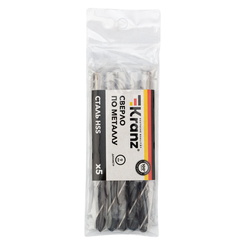 Купить Сверло KRANZ по металлу 9,0 мм повышенной прочности с углом заточки 118 градусов HSS, 5 шт. в упаковке, DIN 338