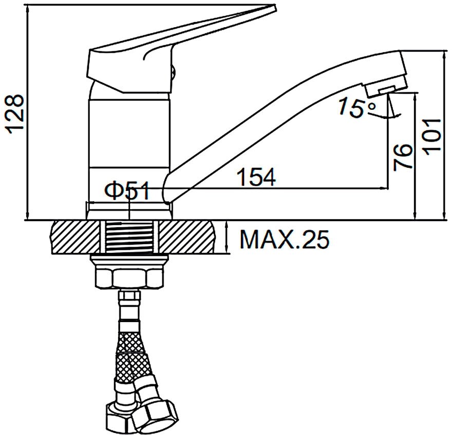 Смеситель для кухни, кор.излив, карт.40мм, гайка Ledeme, 1/10; L4540-2