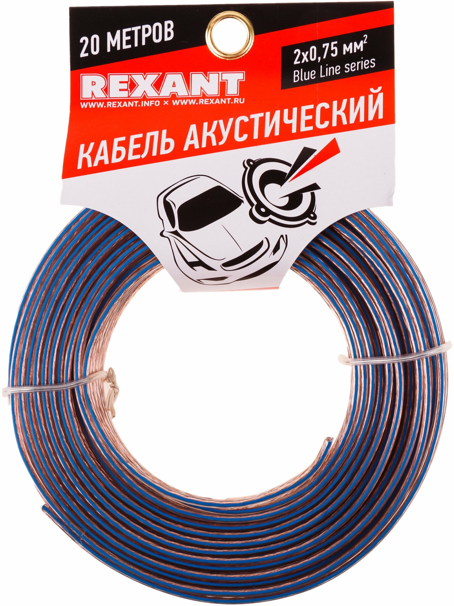 Купить Акустический кабель REXANT 2х0,75 мм2, прозрачный BLUELINE, мини-бухта 20 м