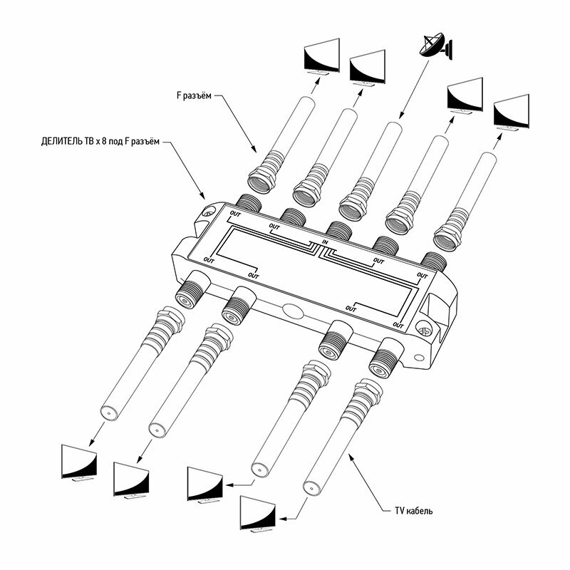 Делитель REXANT, ТВ х 8 под F разъём 5-2500 МГц спутник 05-6205