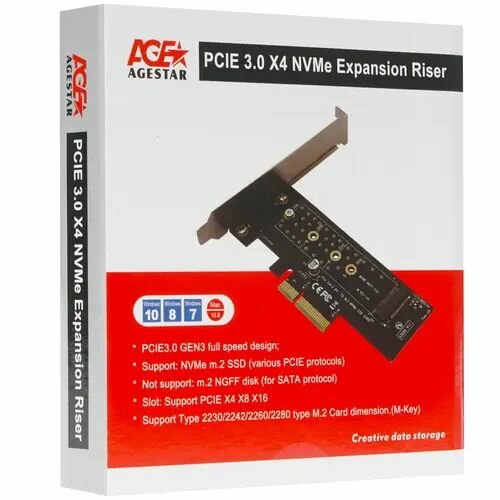 Плата расширения PCIE 3.0 X4 M.2 NVMe AgeStar AS-MC01