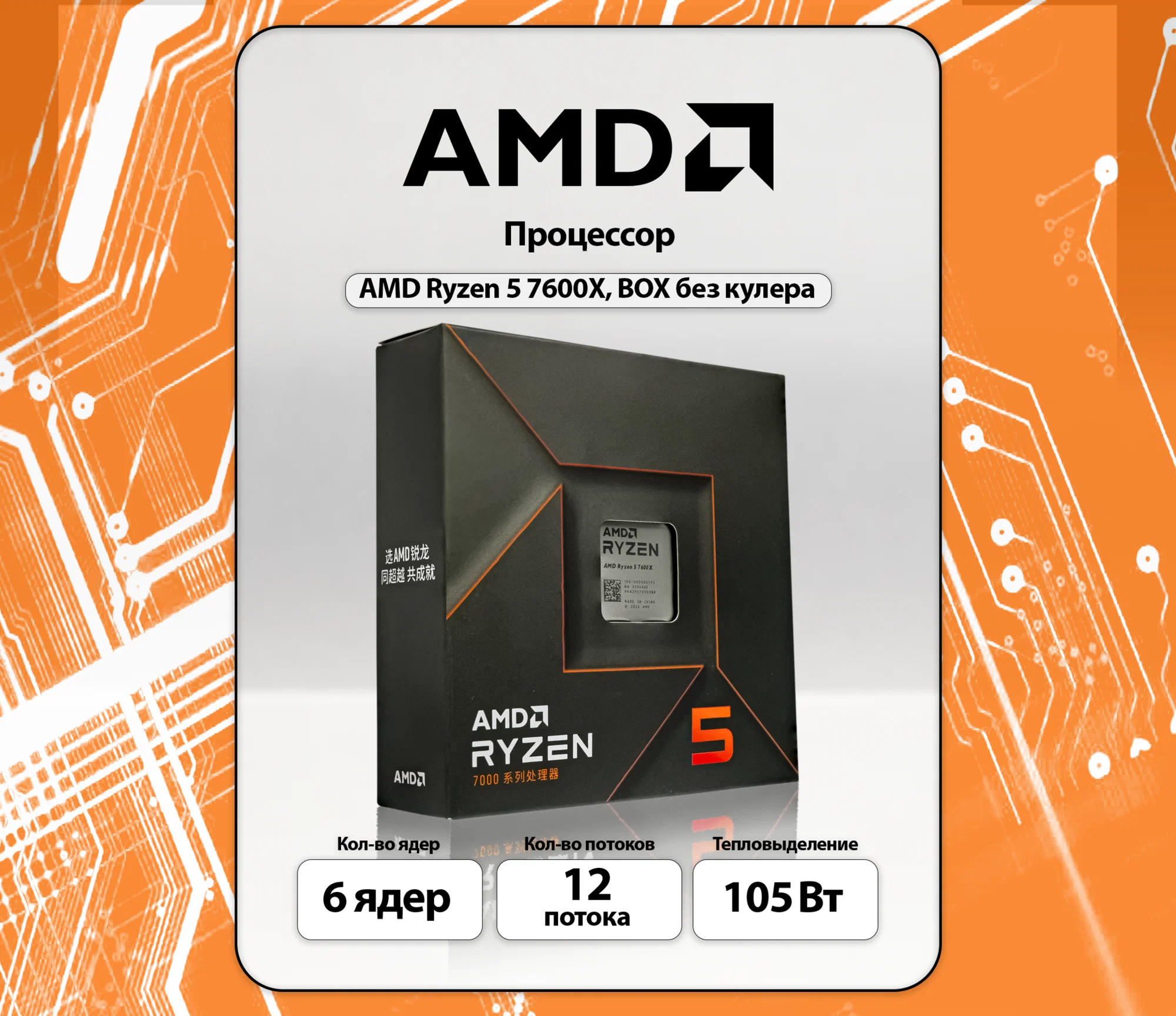 Процессор AMD Ryzen 5 7600X BOX (100-100000593WOF) (без кулера)