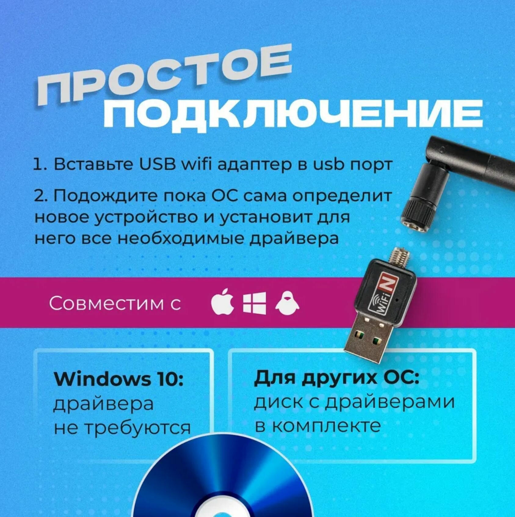 Wi-Fi адаптер USB 300 Мб/с, 2.4GHz, 802.11b/gn, 20dBm с антенной интересное: