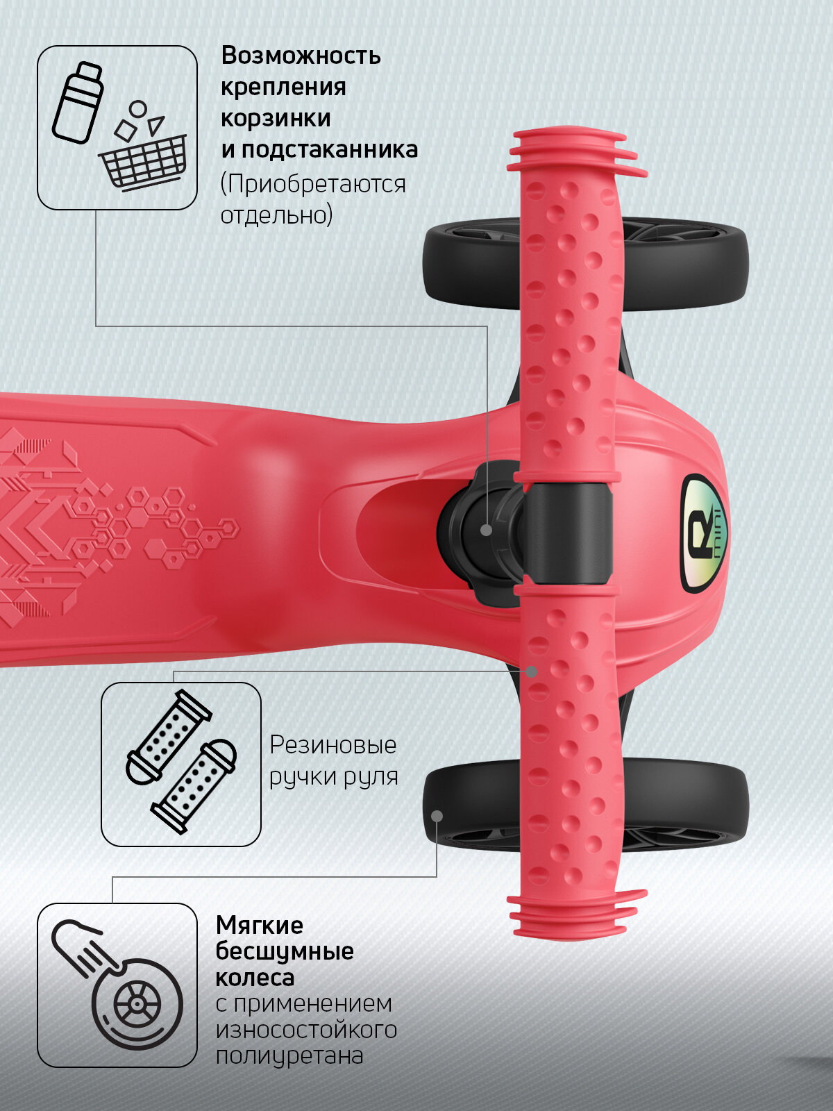 Самокат, самокат трехколесный детский, с цветными ручками Buggy Boom Alfa Mini R, рубиновый