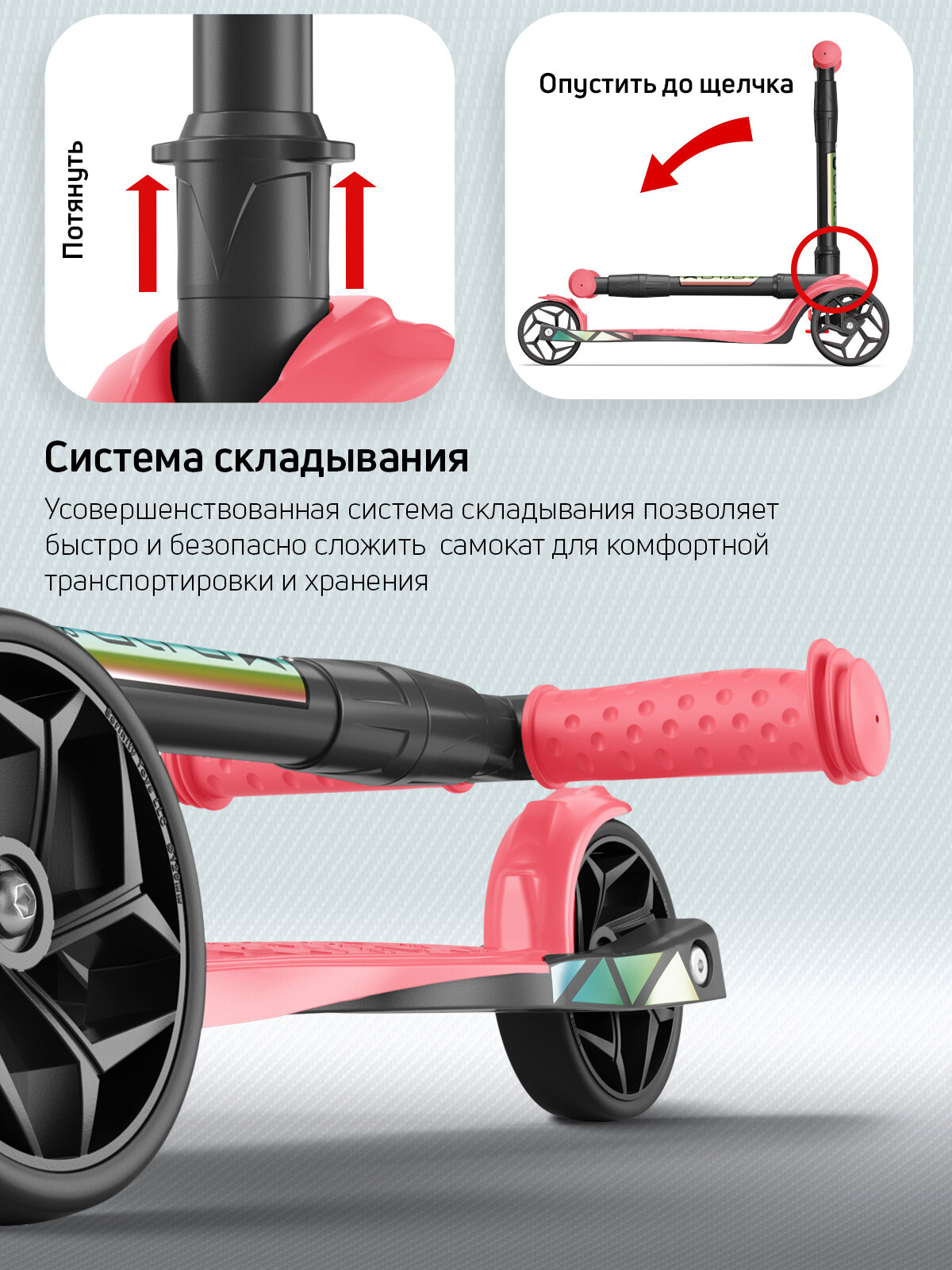 Самокат, самокат трехколесный детский, с цветными ручками Buggy Boom Alfa Mini R, коралловый