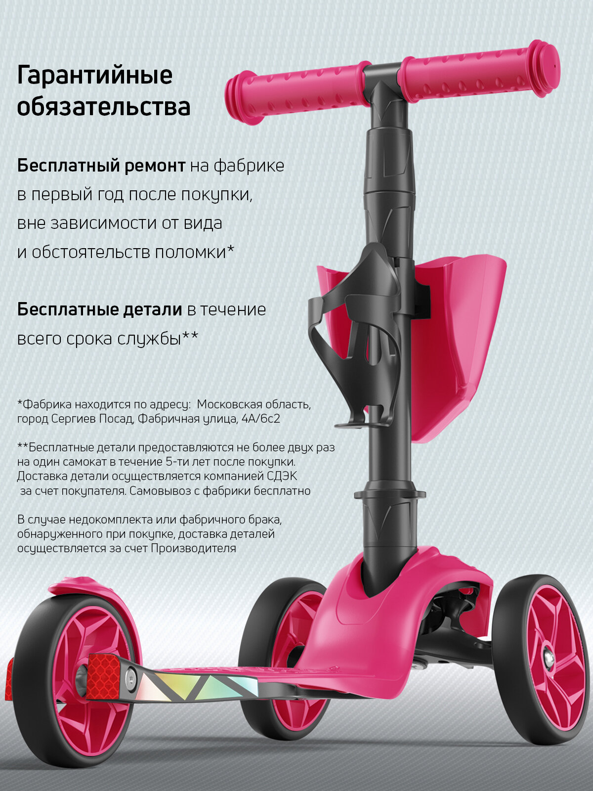 Самокат детский трехколесный с корзинкой и подстаканником для бутылок от Buggy Boom