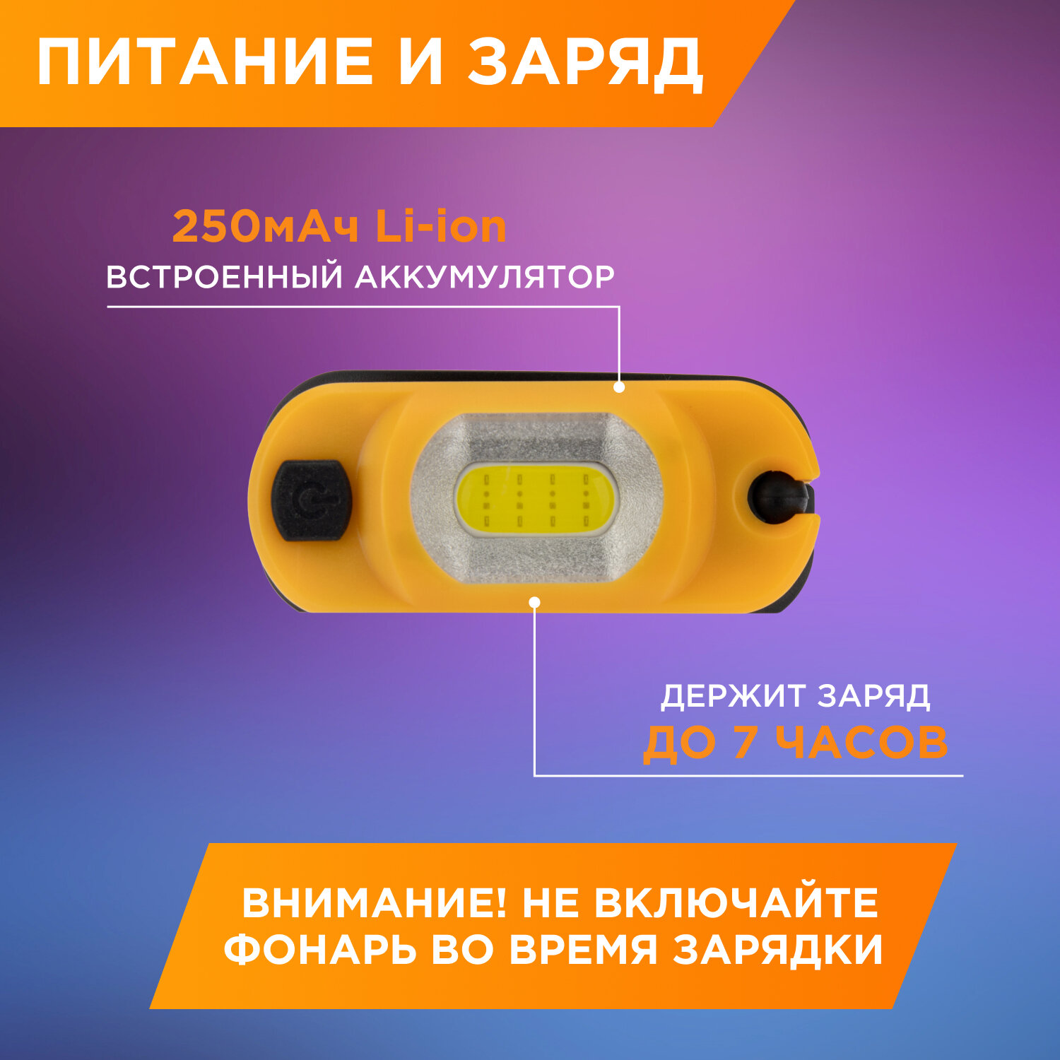 Налобный фонарь поворотный на шарнире 100%, 50%, красный свет, пульсирующий красный; встроенный аккумулятор, (USB кабель в комплекте) Артикул 75-700