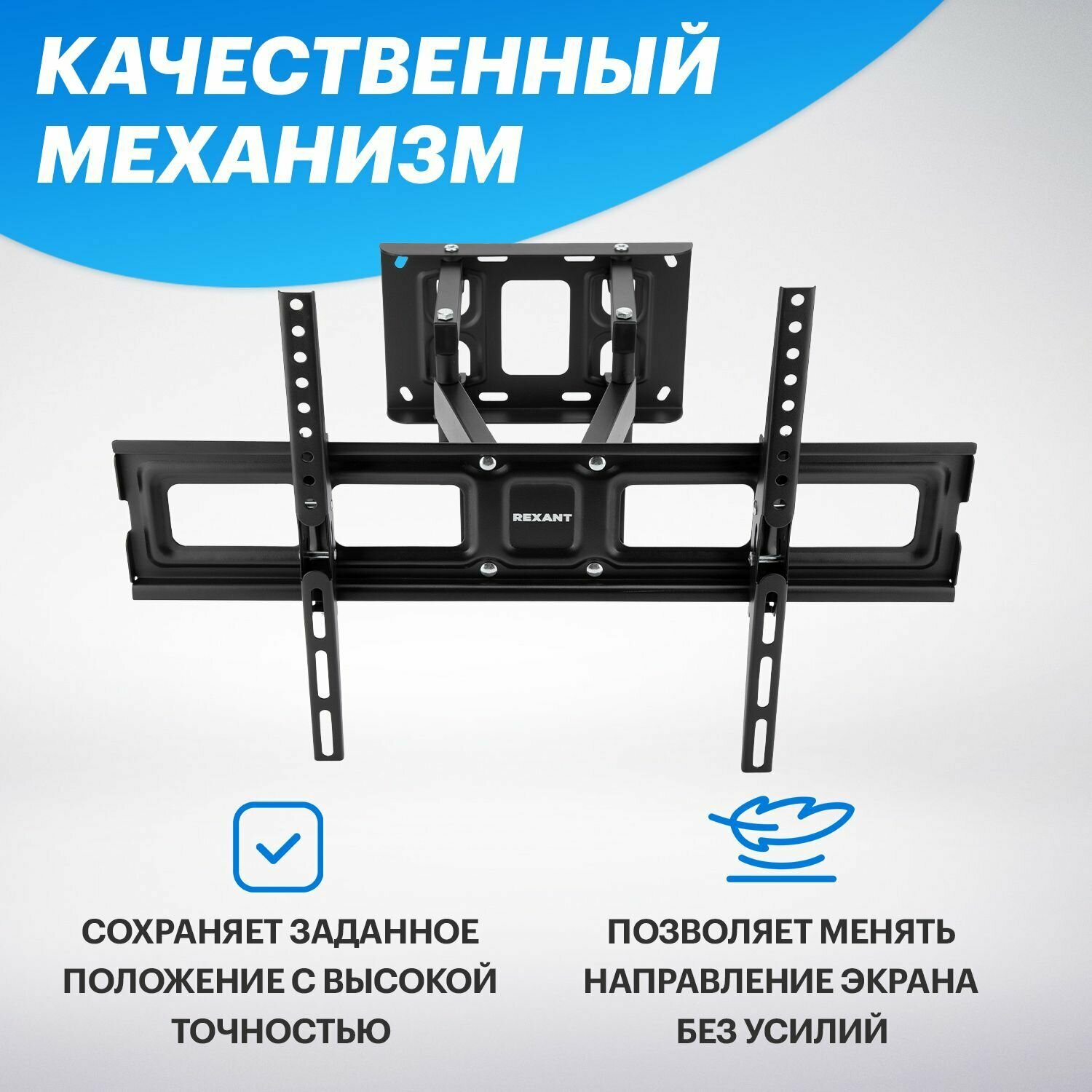 Кронштейн наклонно-поворотный REXANT HOME для телевизора 37" - 70", двойное колено