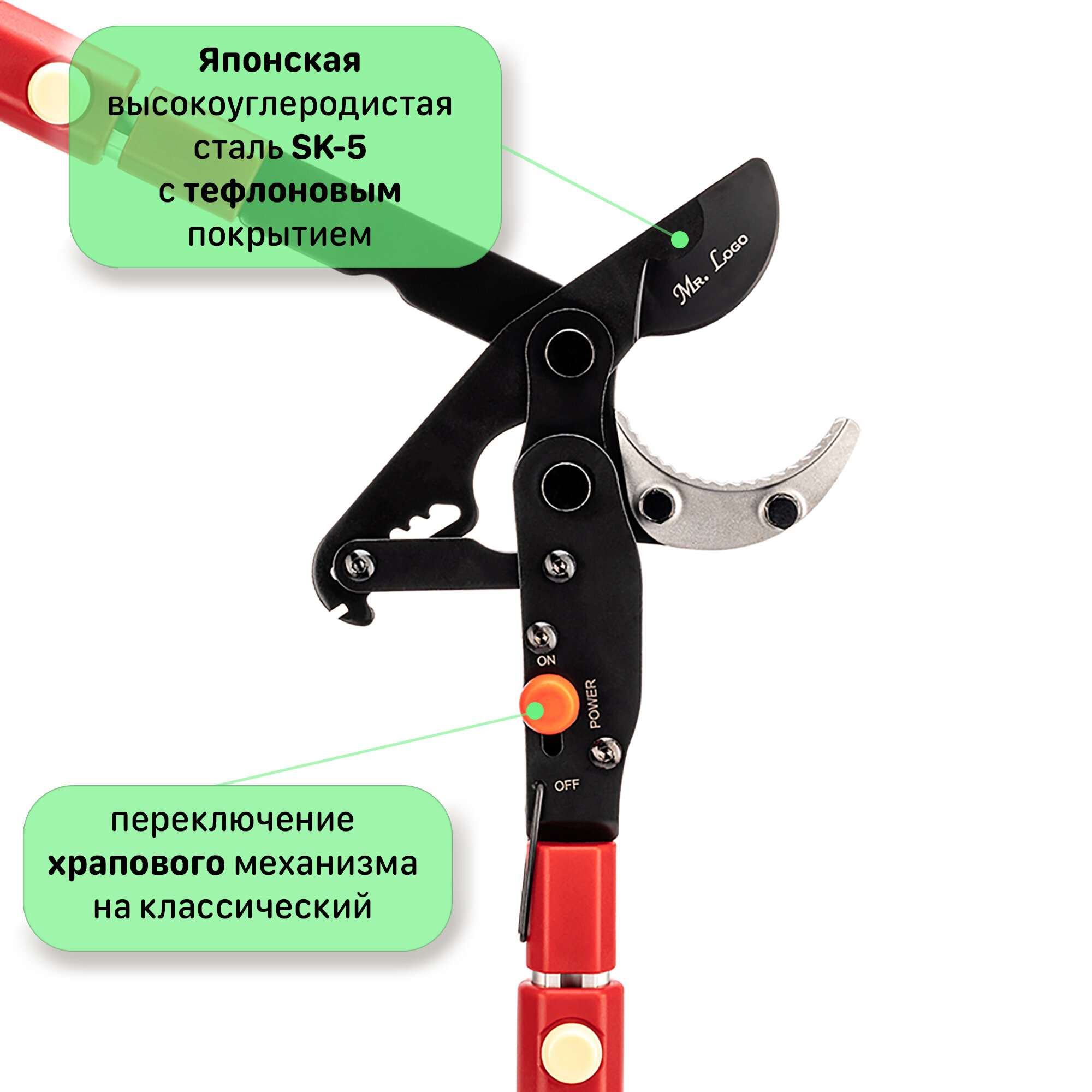 Сучкорез двойного действия с храповым и классическим механизмом с телескопическими ручками Mr. Logo арт. 4650