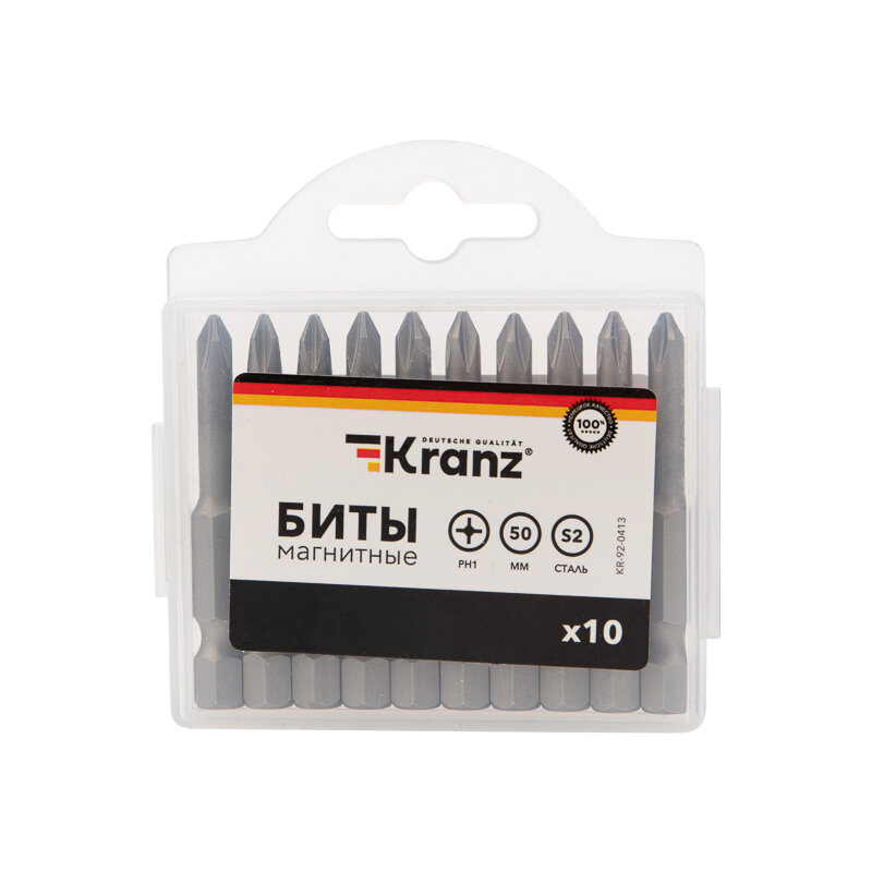 Бита PH1x50 мм сталь S2 для шуруповерта 10 шт KRANZ