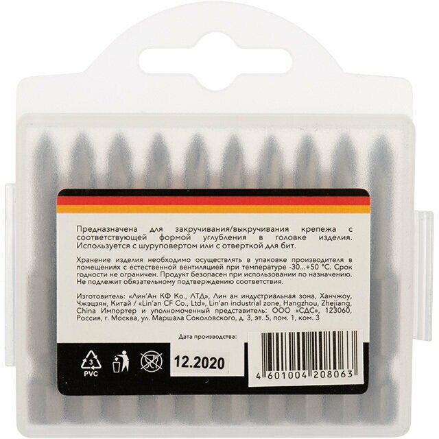 Бита KRANZ стальная PH2х50 мм для шуруповерта с шестигранным хвостовиком Е6,3, 10 штук в коробке интересное: