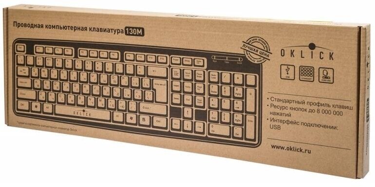 Клавиатура Oklick "130m", черная, usb (8136)