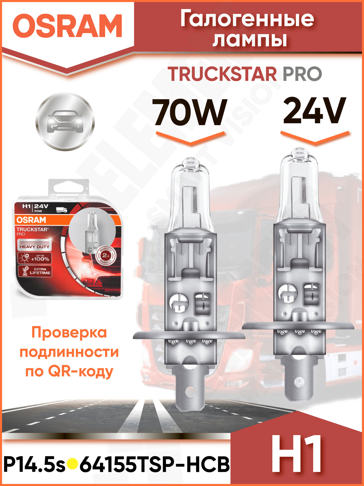 OSRAM 64155TSPHCB Комплект ламп H1 24V 70W P14.5s TRUCKSTAR PRO +100% больше света 2шт.(1к-т)