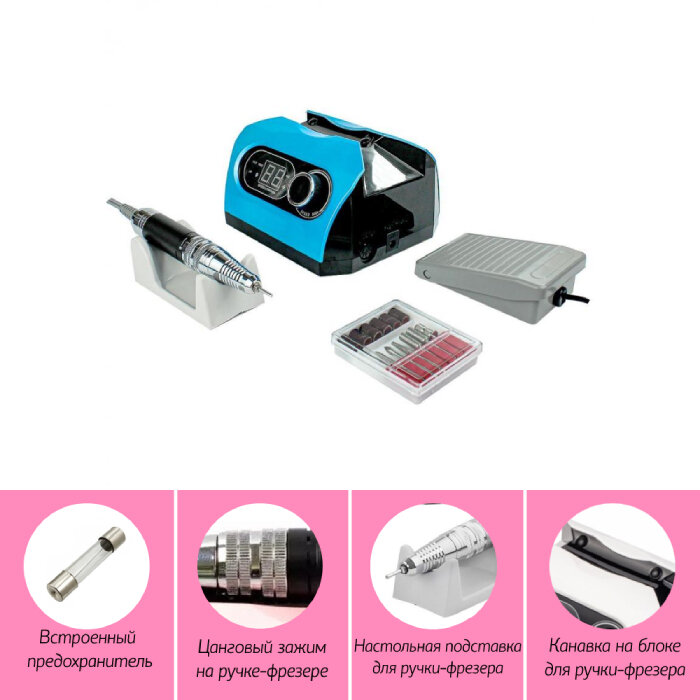 Аппарат для маникюра и педикюра Nail Drill SET ZS-717 PRO, 65 вт, 45000 оборотов, синий