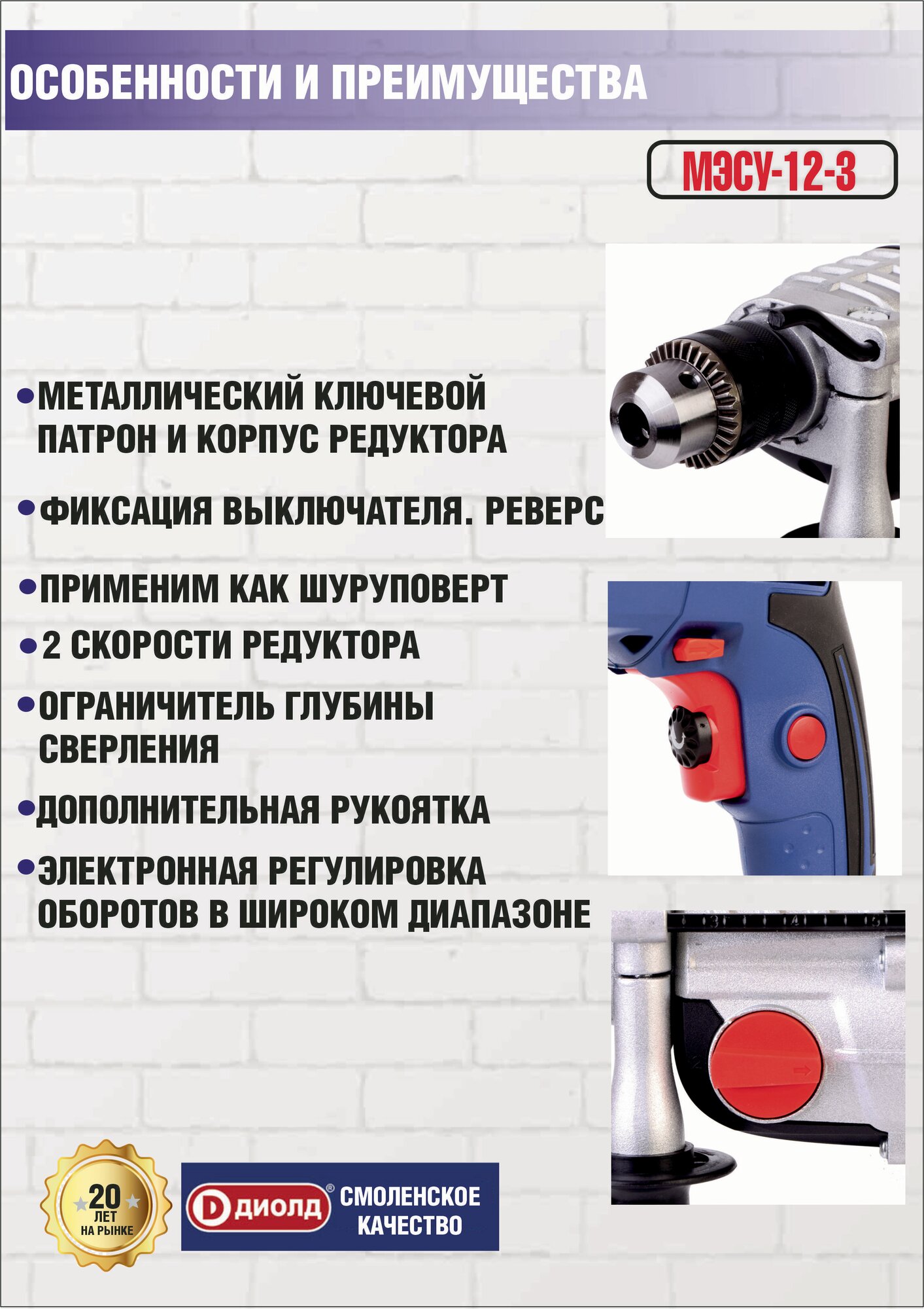 Дрель ударная МЭСУ-12-3 диолд