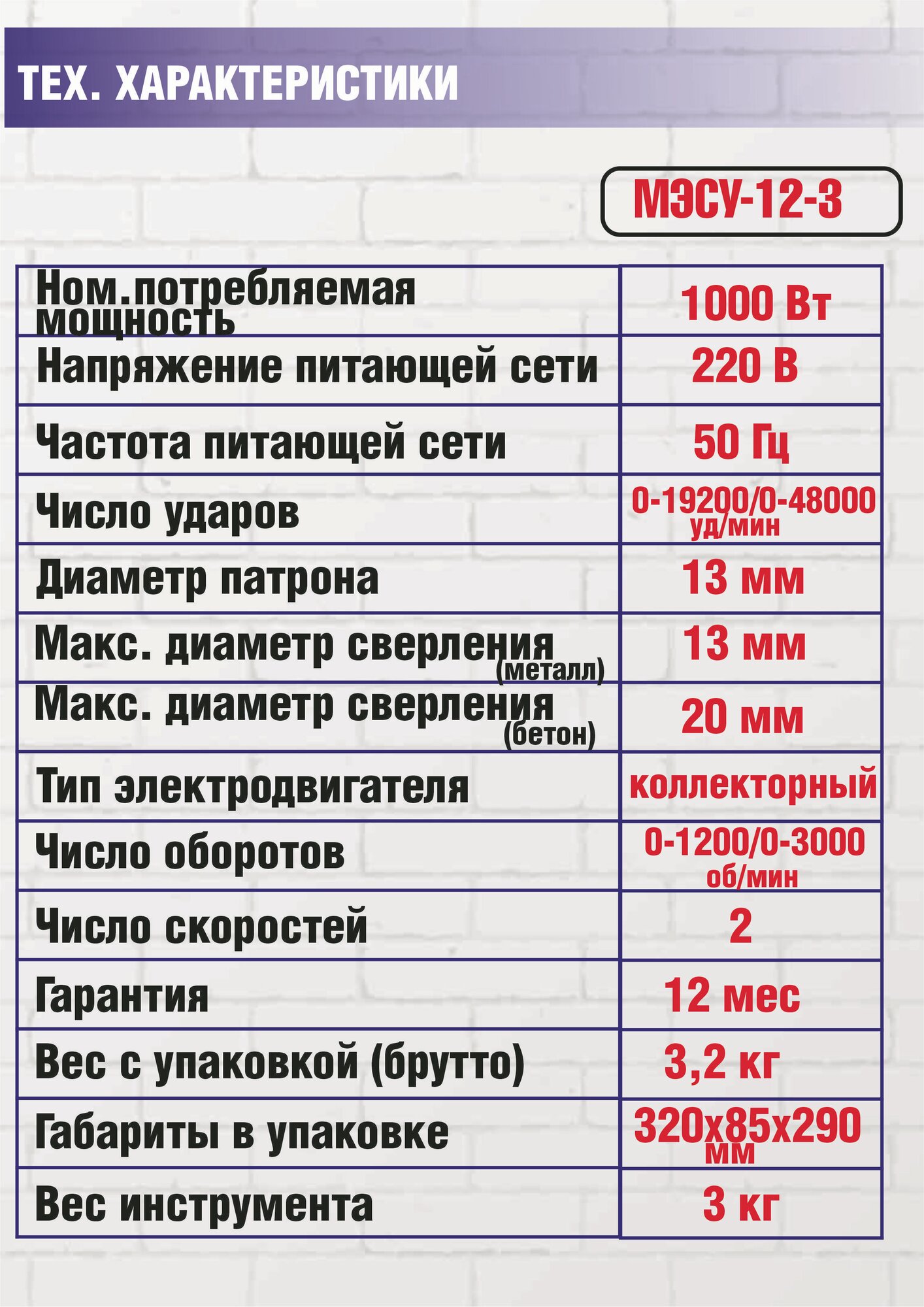 | Макс. количество ударов в минуту | 48000 уд/мин |