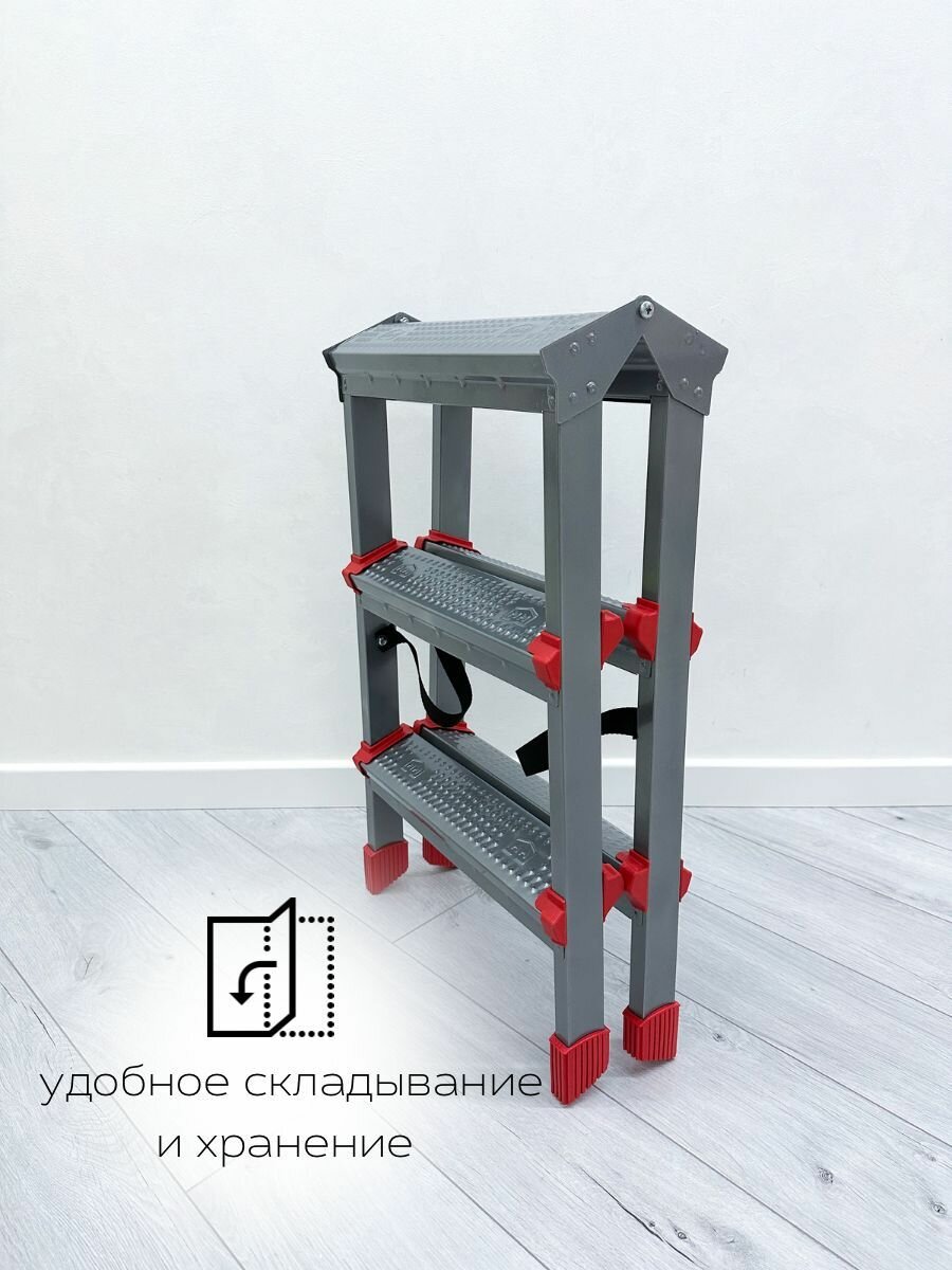 | Плюсы: | удобная стремянка, прорезиненные нескользящие ножки |