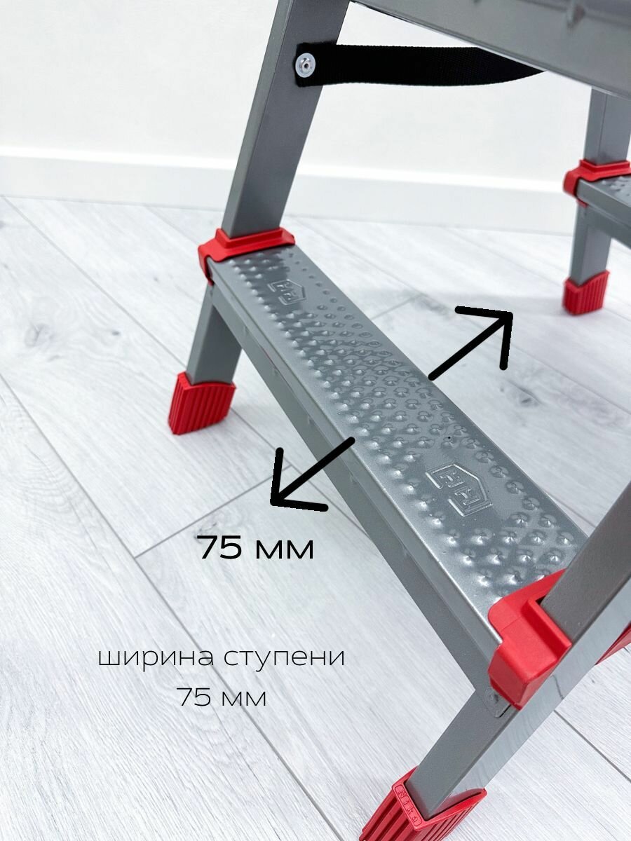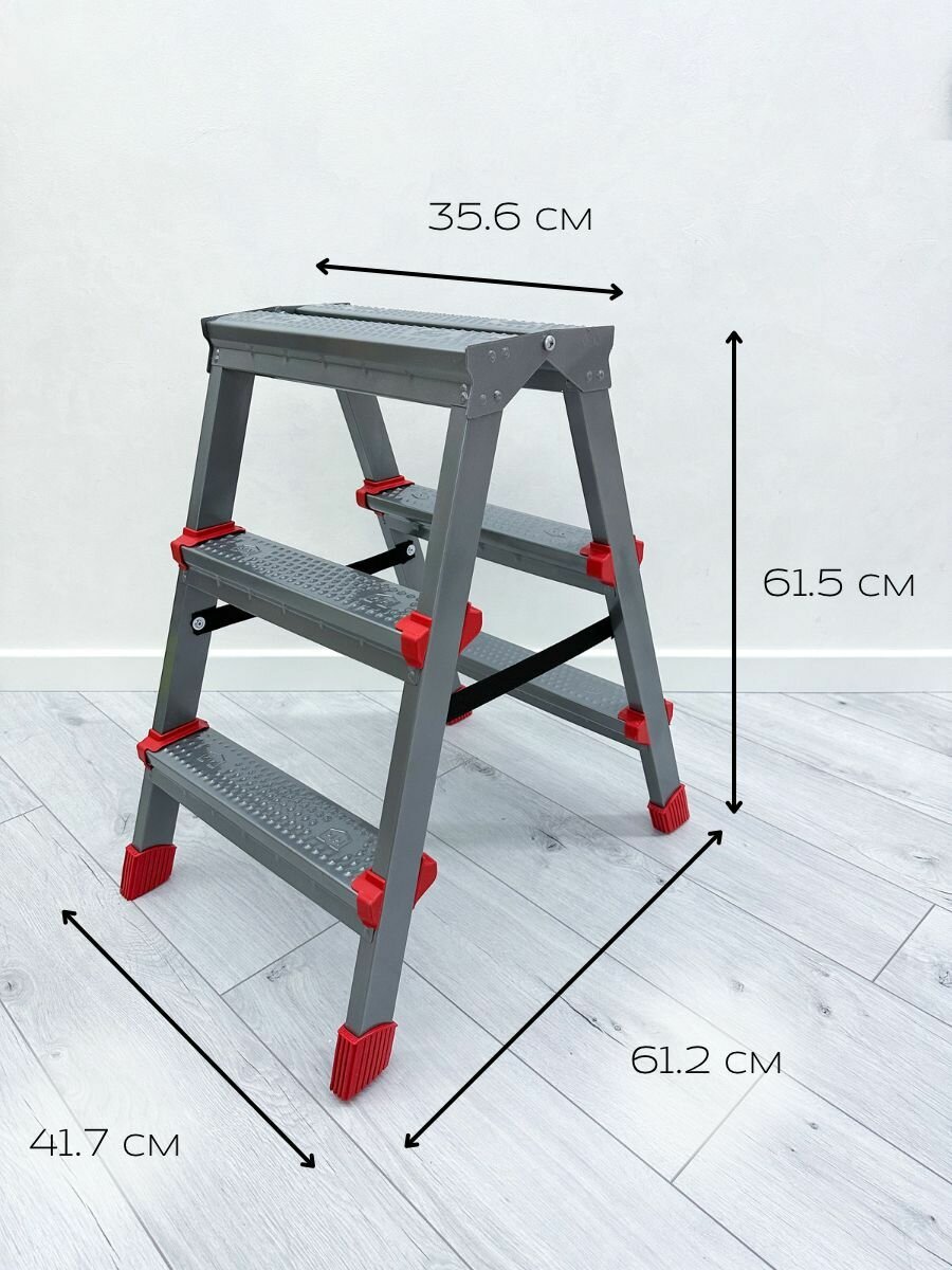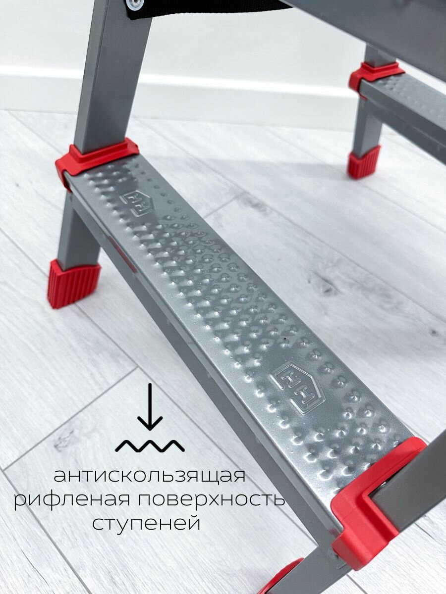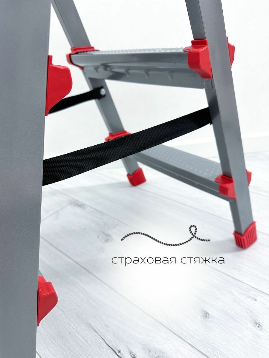 Лестница-стремянка двухсторонняя ННДС3 антискользящая рифленая поверхность ступеней страховая стяжка .