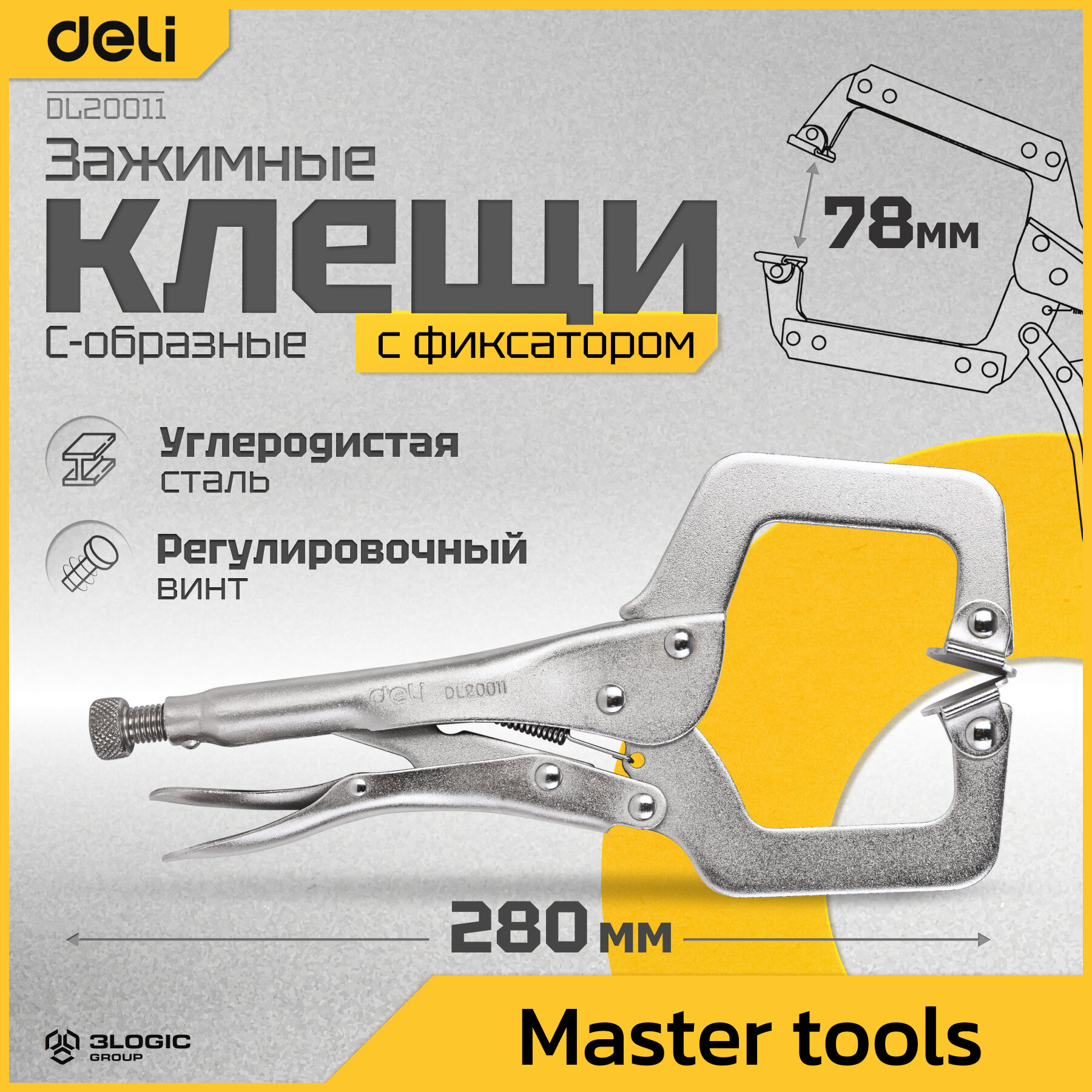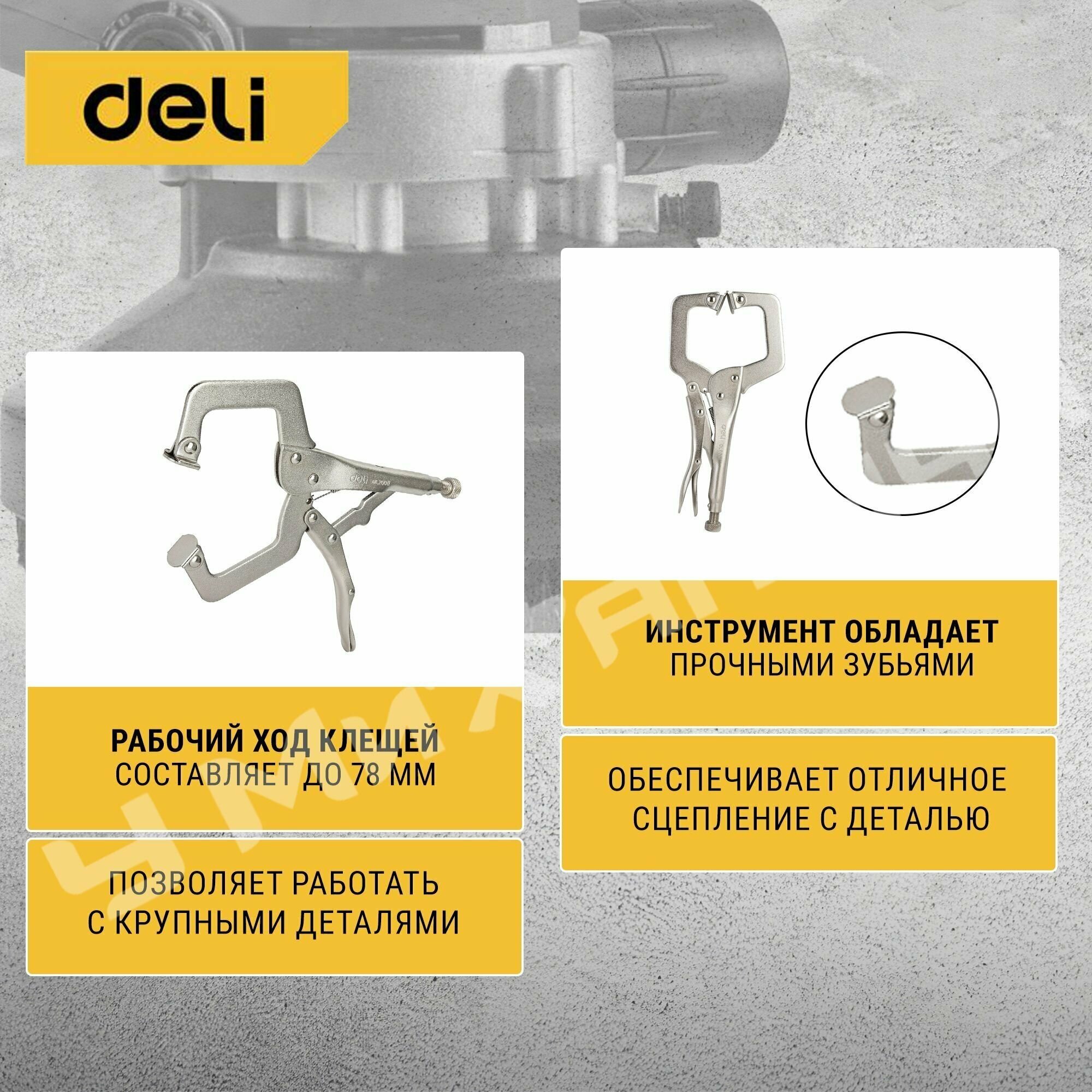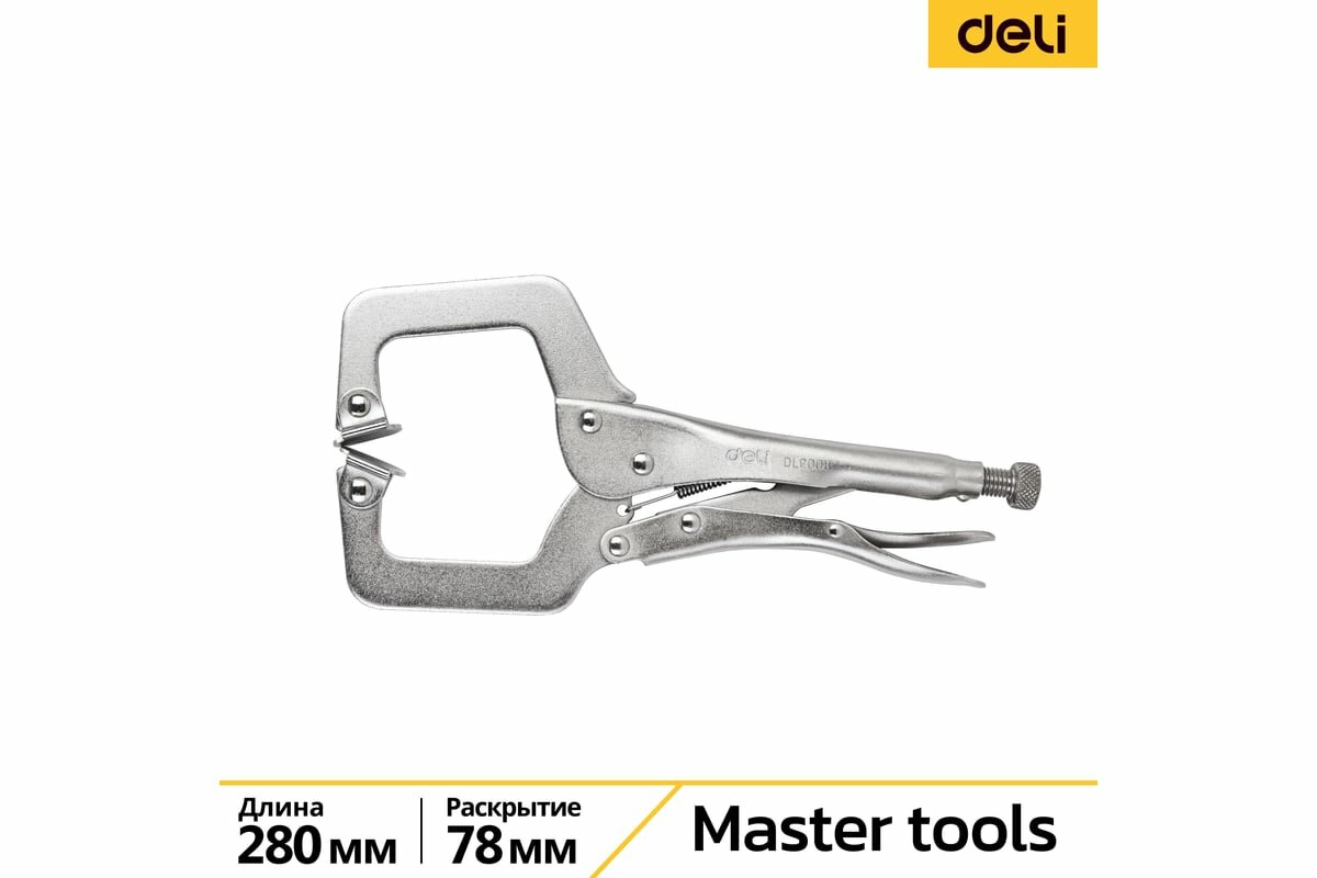 Зажимной инструмент Deli Зажимные клещи С-образные с фиксатором Deli DL20011 280мм, рабочий ход 78мм, регулировочный винт