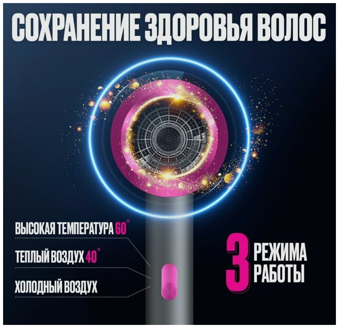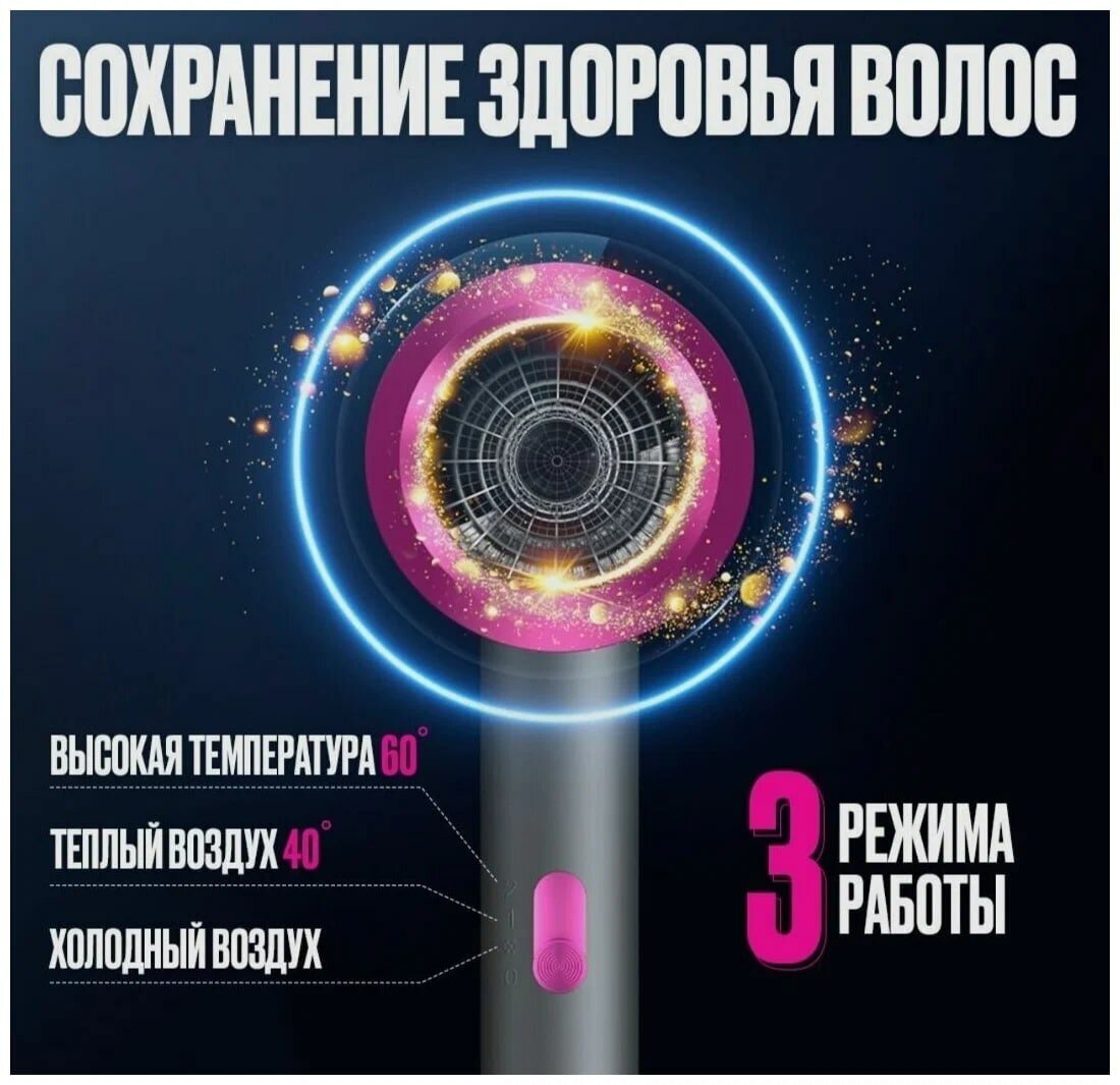 Фен для волос профессиональный 3 режима, функция холодного воздуха, Белый интересное: