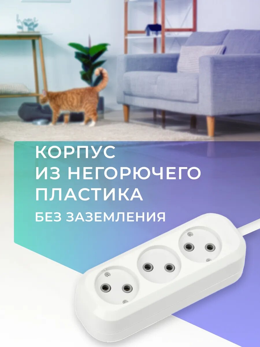 Удлинитель Navigator NPE-S1-03-500-X-2x0.75, 3 розетки, 5 м, б/з, 6А / 1300 Вт