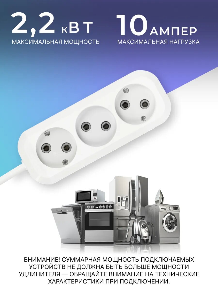 Сетевой удлинитель SmartBuy SBE-10-3-15-N, 3 розетки, 15 м, белый