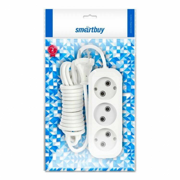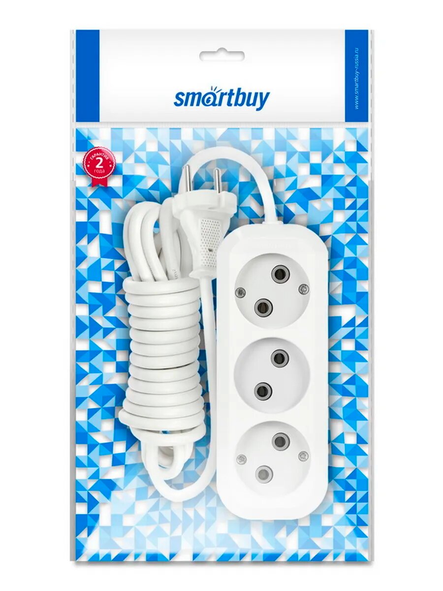Удлинитель SMARTBUY SBE-10-3-15-N 10А/2.2кВт, ПВС 2х1.0, 3 розетки, 15м, белый