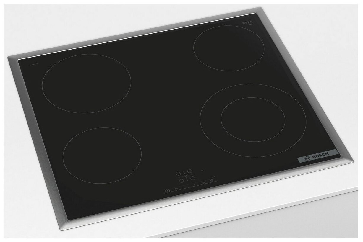Электрическая варочная панель Bosch PKF645BB2E, цвет панели черный, цвет рамки серебристый