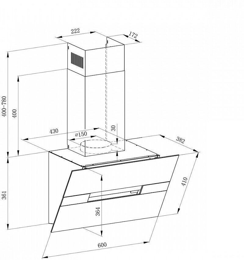 Каминная вытяжка Maunfeld MERSEY 60 Inox glass W