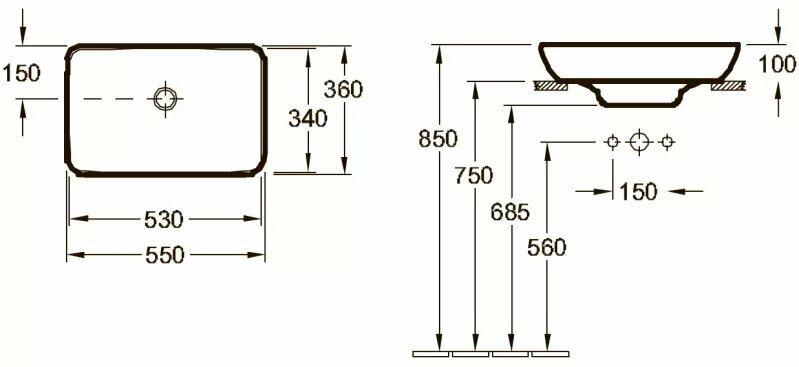 Раковина полувстраиваемая Villeroy & Boch Venticello 55x36 41135501
