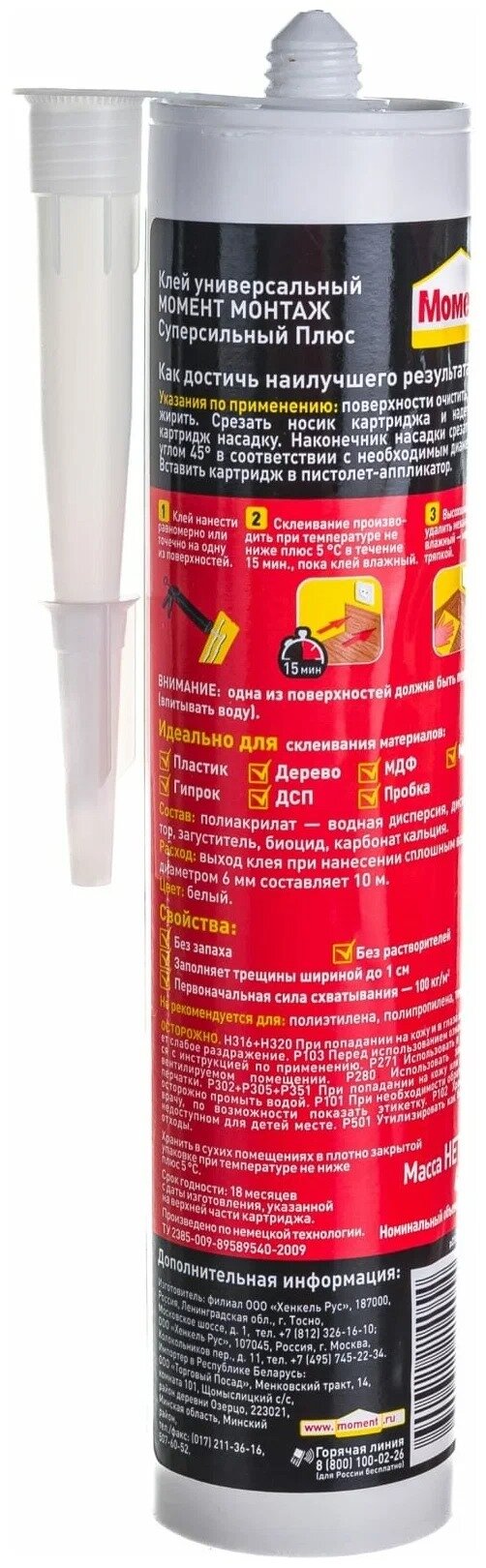 Монтажный клей Момент Монтаж Суперсильный Плюс МВ-100 (380 г) 0.4 л 2 шт .