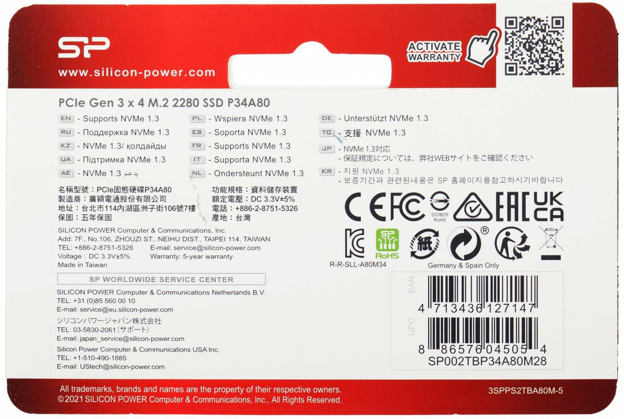 Silicon Power PCIe Gen3x4 P34A80 2Tb SP002TBP34A80M28