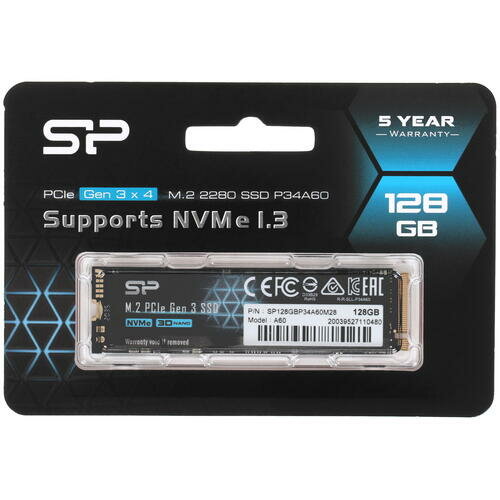 Купить Внутренний твердотельный накопитель SSD Silicon Power 128GB, P34A60, PCIe 3x4, R/W - 2200/1600 MB/s, (M.2), 2280, TLC 3D NAND
