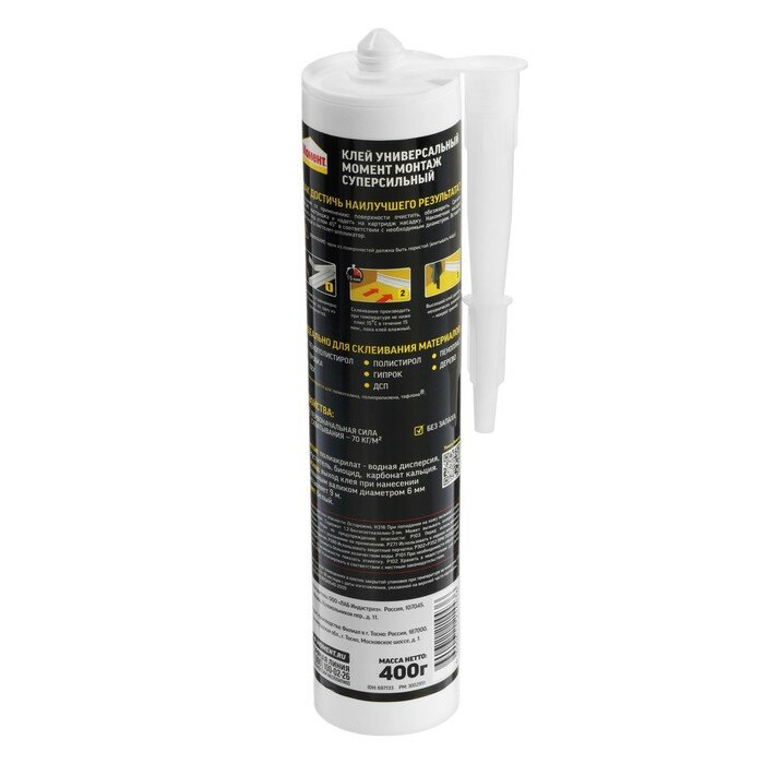 Момент Монтаж Суперсильный MB-70 клей монтажный (0,4кг) / момент Монтаж Суперсильный МВ-70 жидкие гвозди (картридж 400г) белый