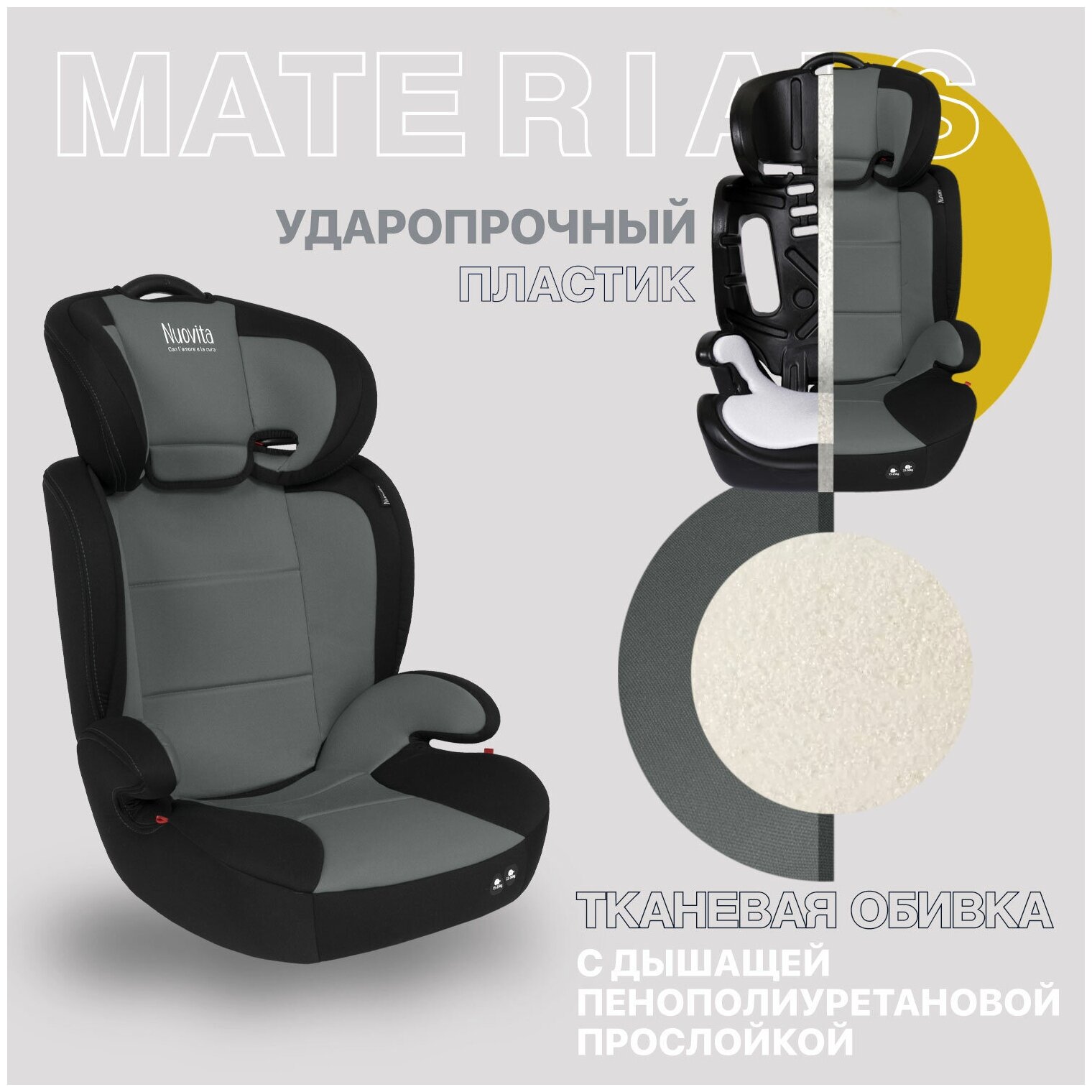 Купить Автокресло детское Nuovita Maczione N23-1, группа 2/3, от 3,5 до 12 лет, от 15 до 36 кг/ трансформируется в бустер (Grigio/Серый)